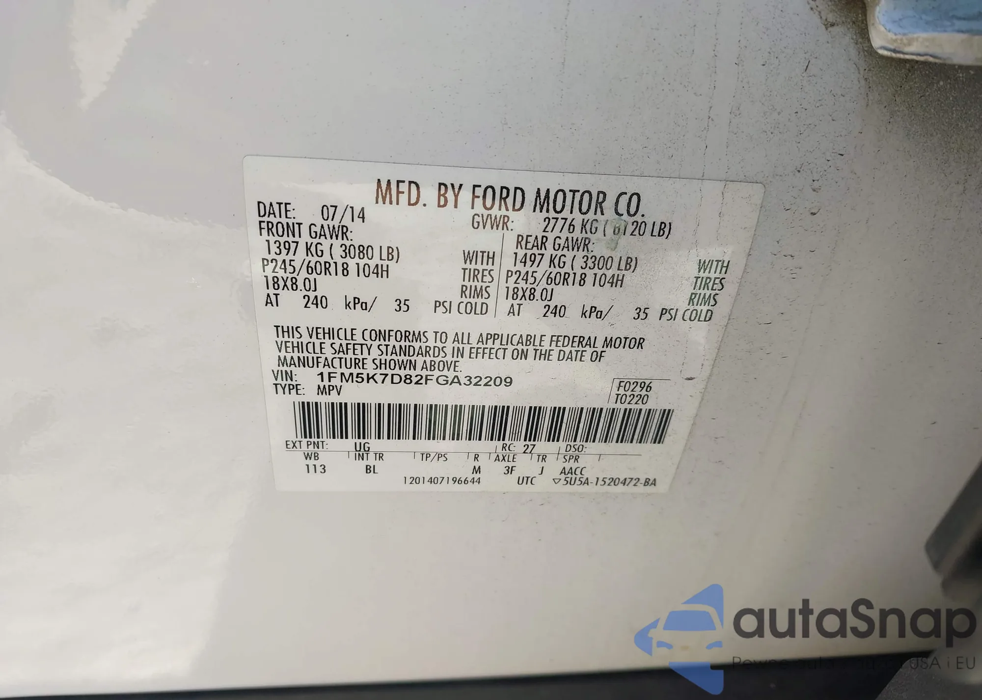 • VIN 1FM5K7D82FGA32209