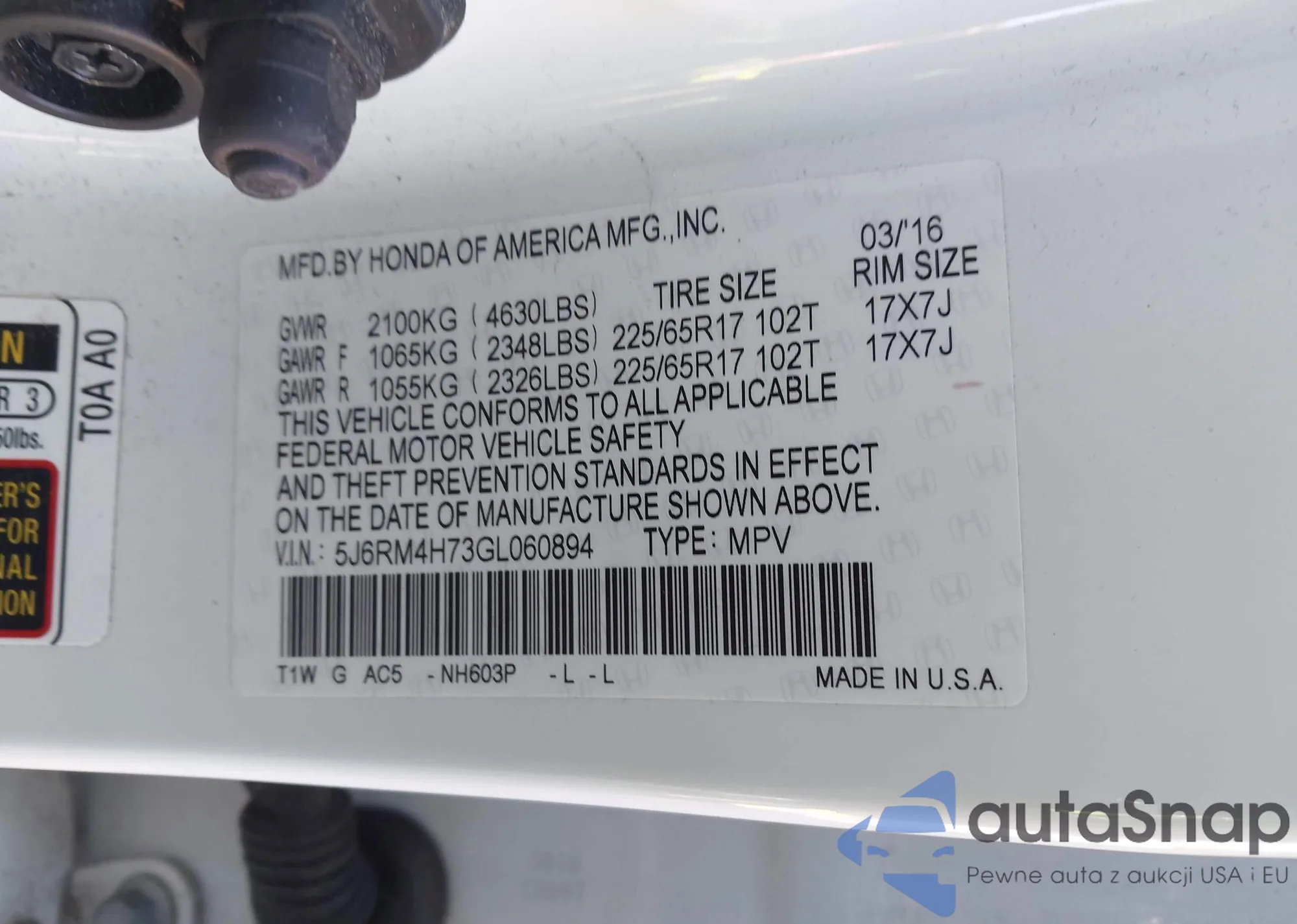 • VIN 2HKRM4H76CH603935
