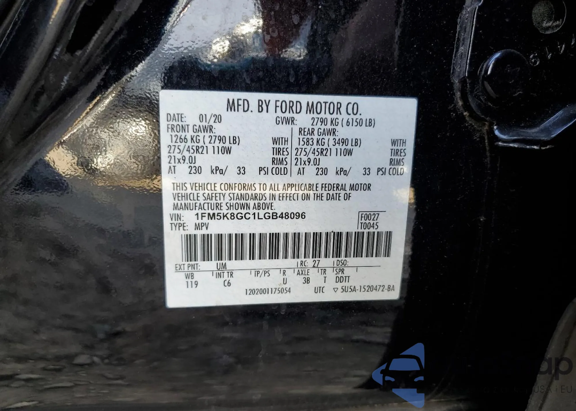 • VIN 1FM5K8GC1LGB48096