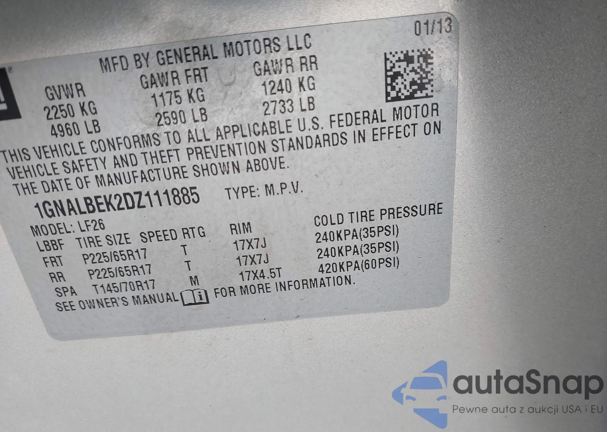 • VIN 1G1ZC5EB3AF159432