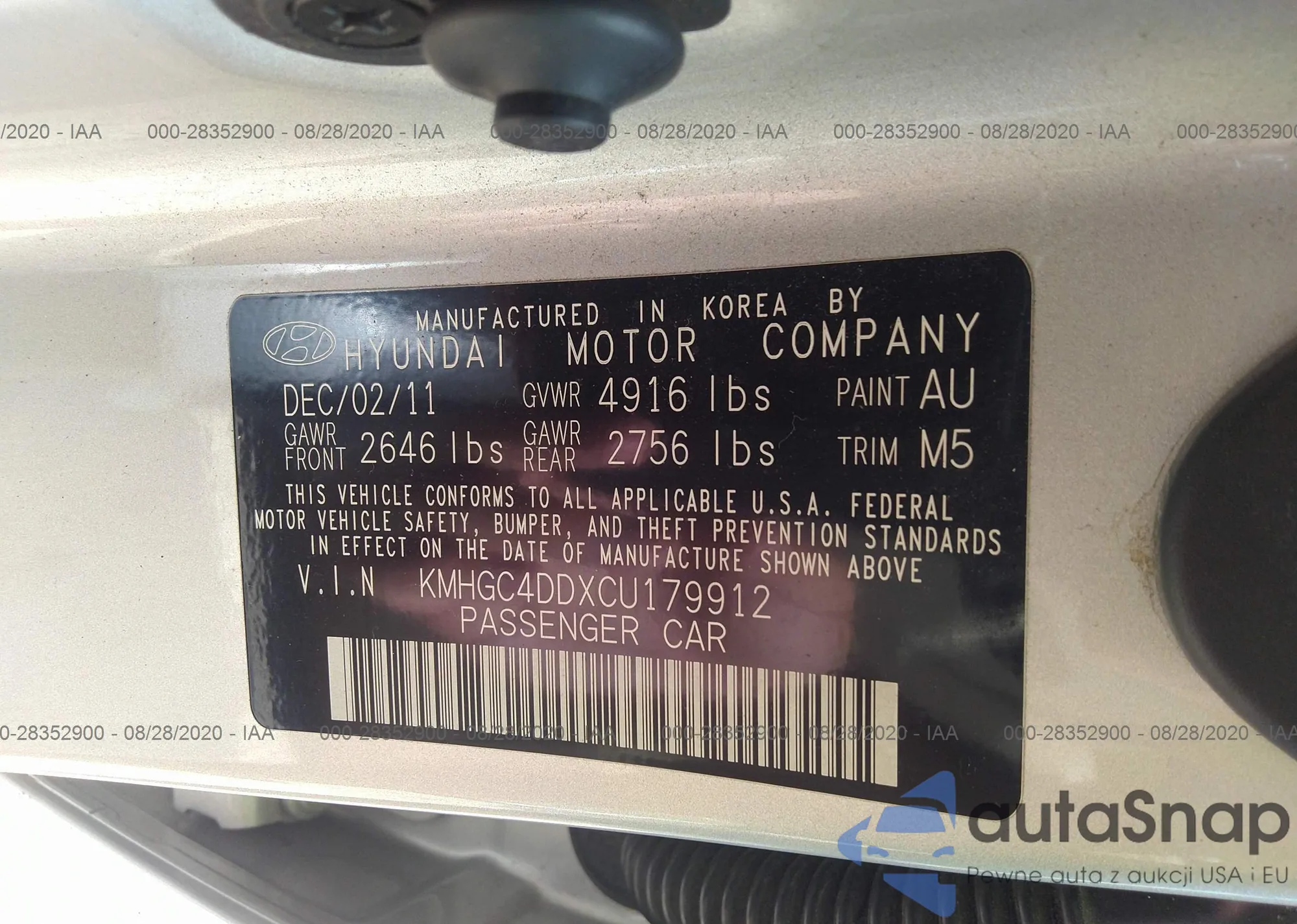 • VIN 5XXGT4L30HG147643