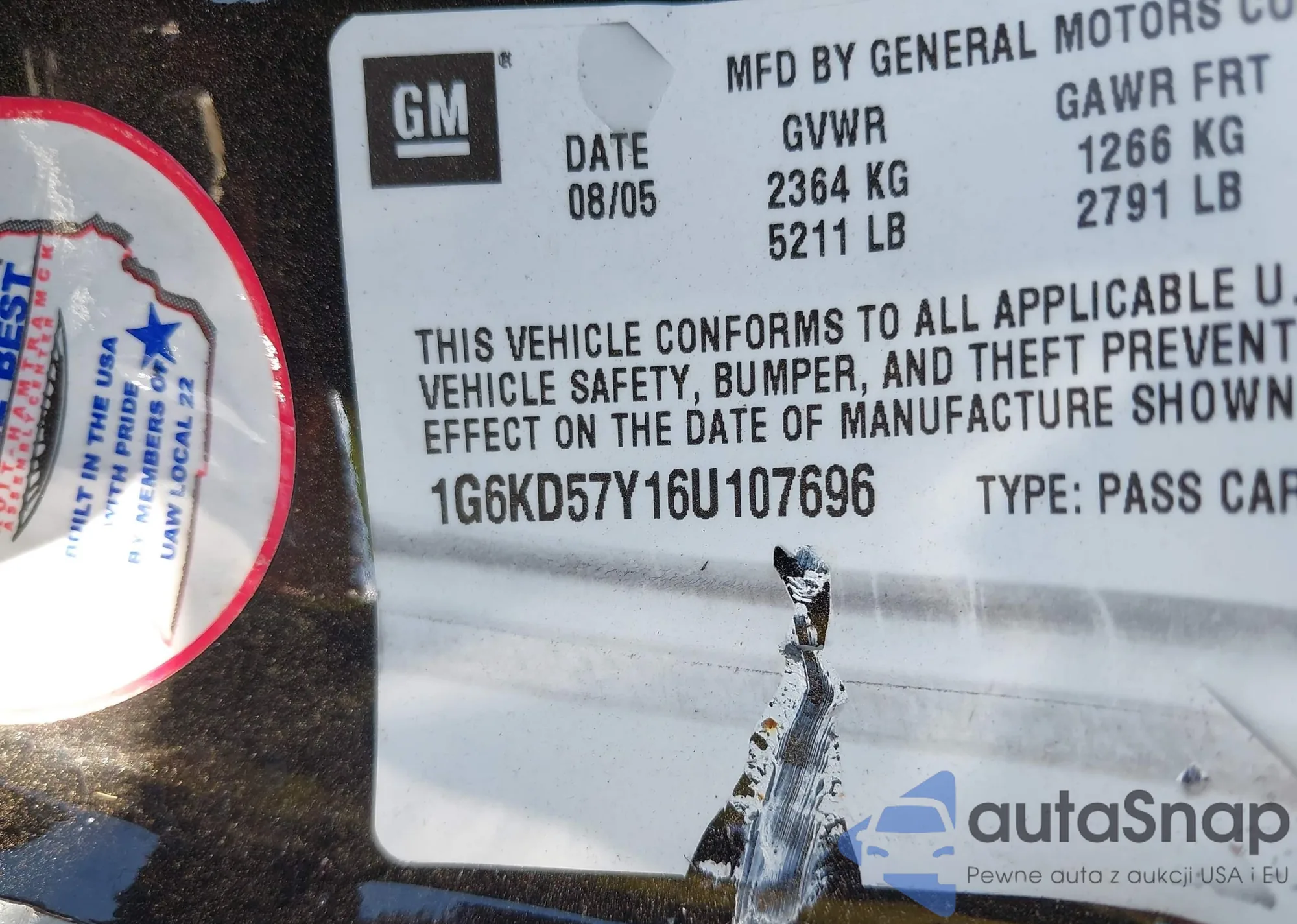 • VIN 1G6KD57Y16U107696