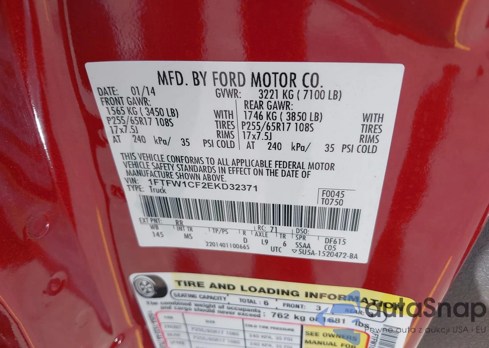 • VIN 1FTFW1CF2EKD32371