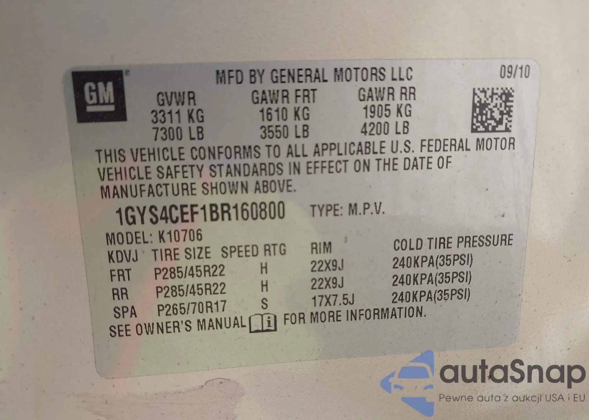 • VIN 1GYS4CEF1BR160800