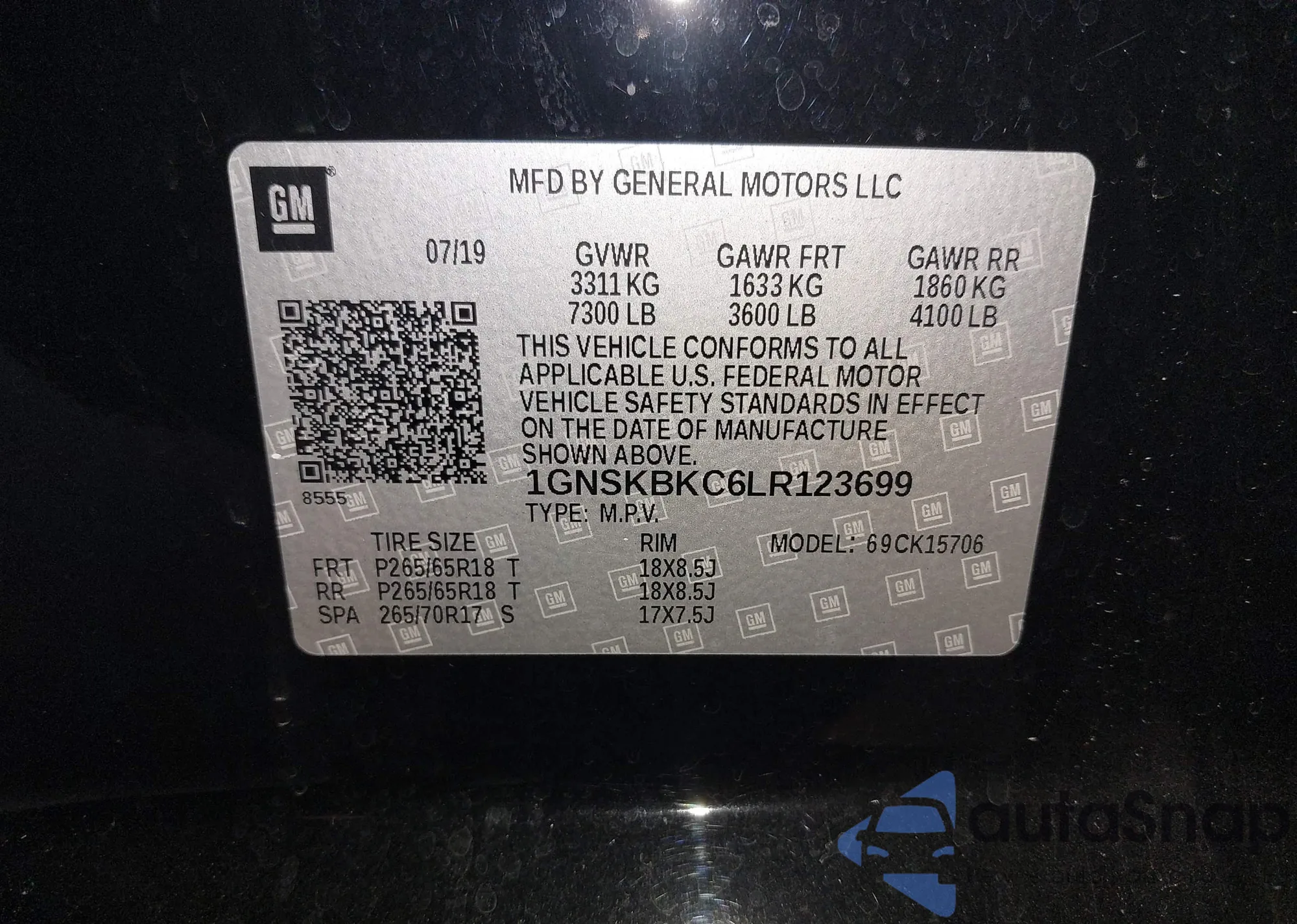 • VIN 1GNSKBKC6LR123699
