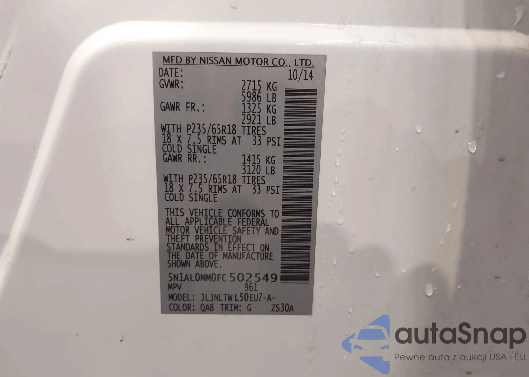 LOT: 43124736 VIN: 5N1AL0MM0FC502549