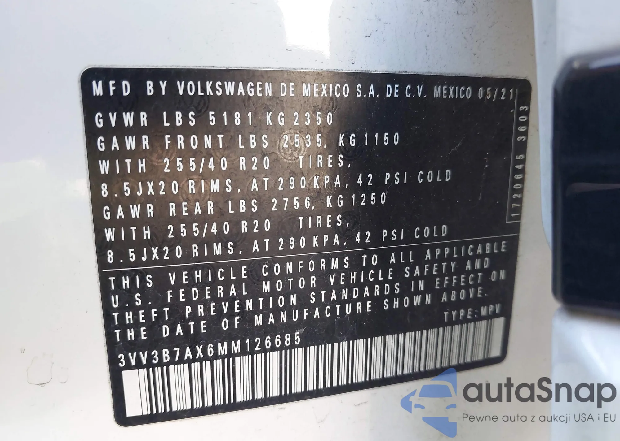 • VIN 3VV3B7AX6MM126685