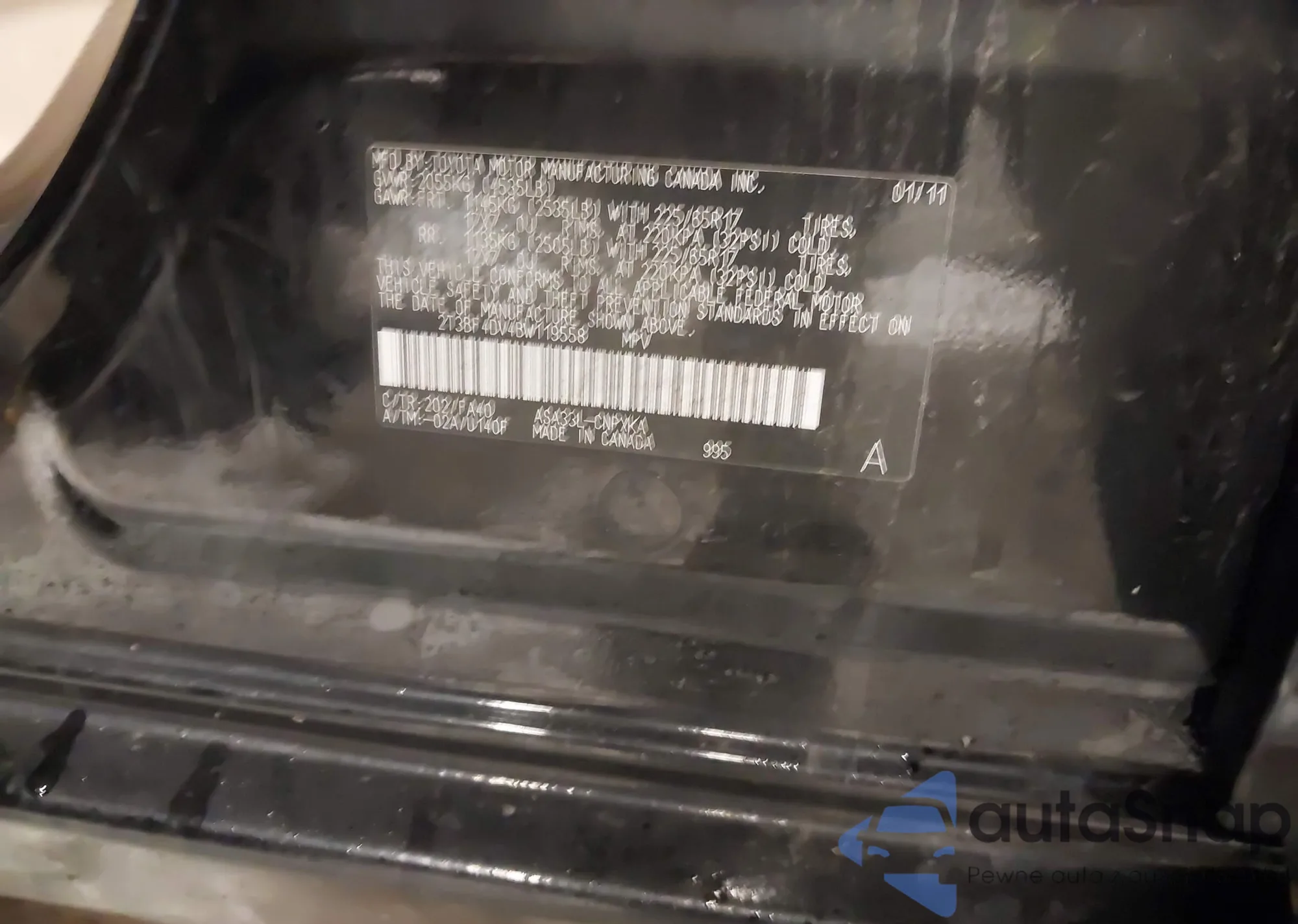 LOT: 43590361 VIN: 2T3BF4DV0CW255168