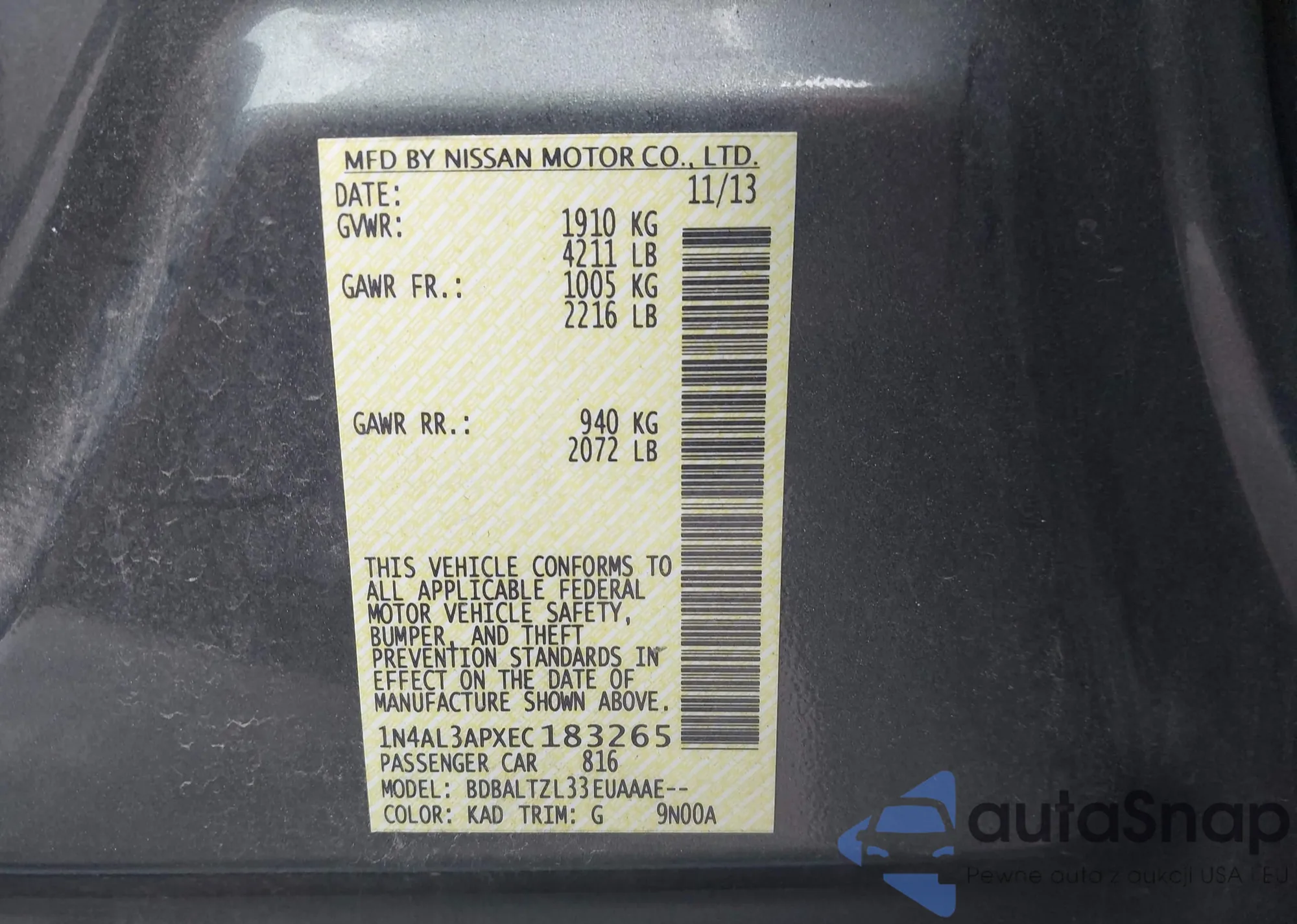 LOT: 43834883 VIN: 1N4AL3APXDC123310