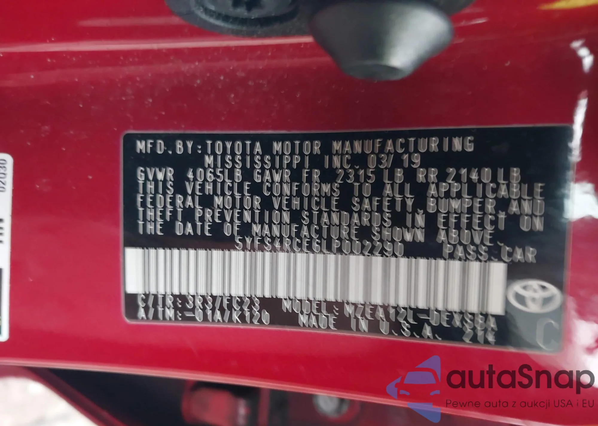 • VIN 5YFS4RCE6LP002290