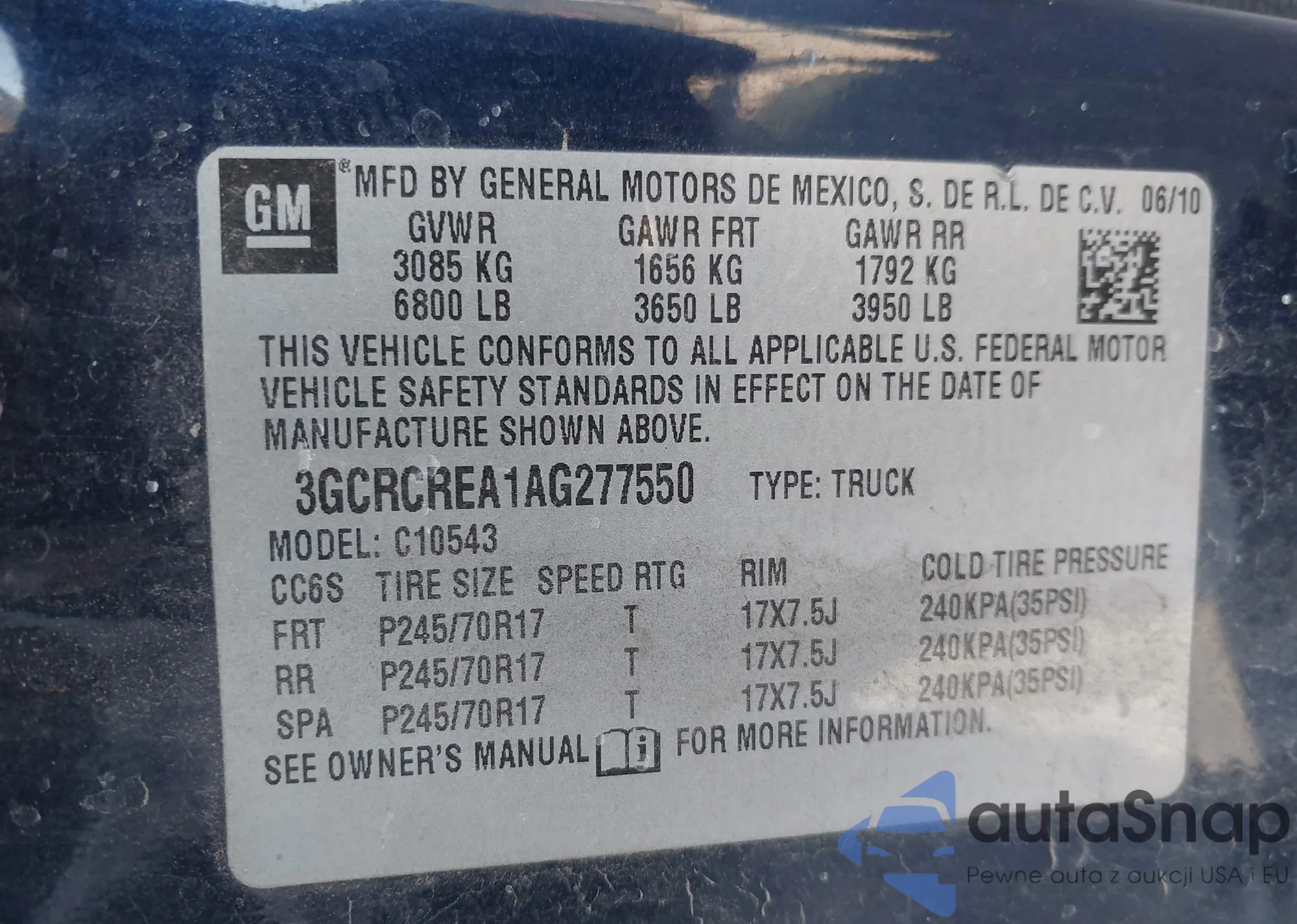 • VIN 3GCRCREA1AG277550