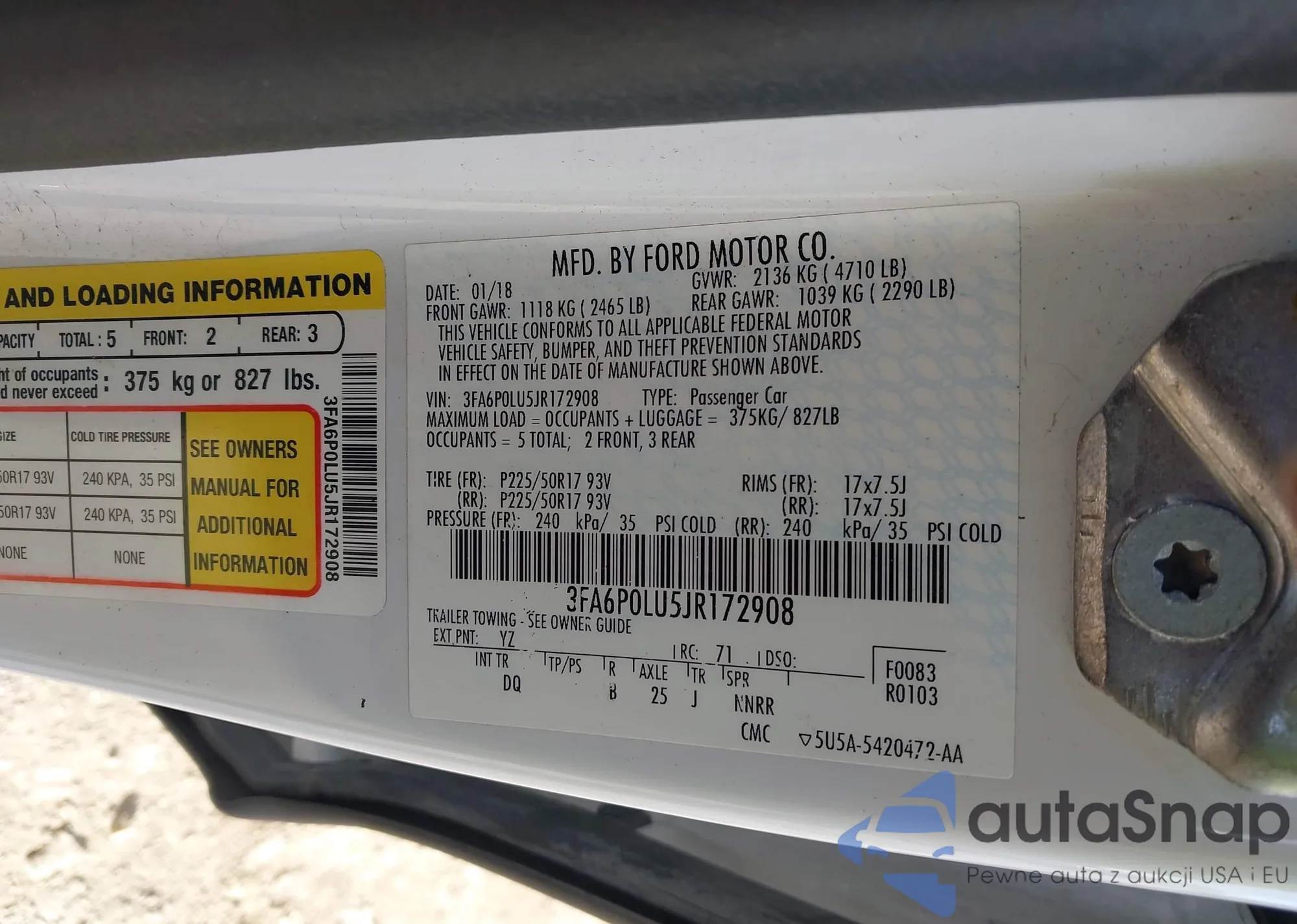 • VIN 3FA6P0LU5JR172908