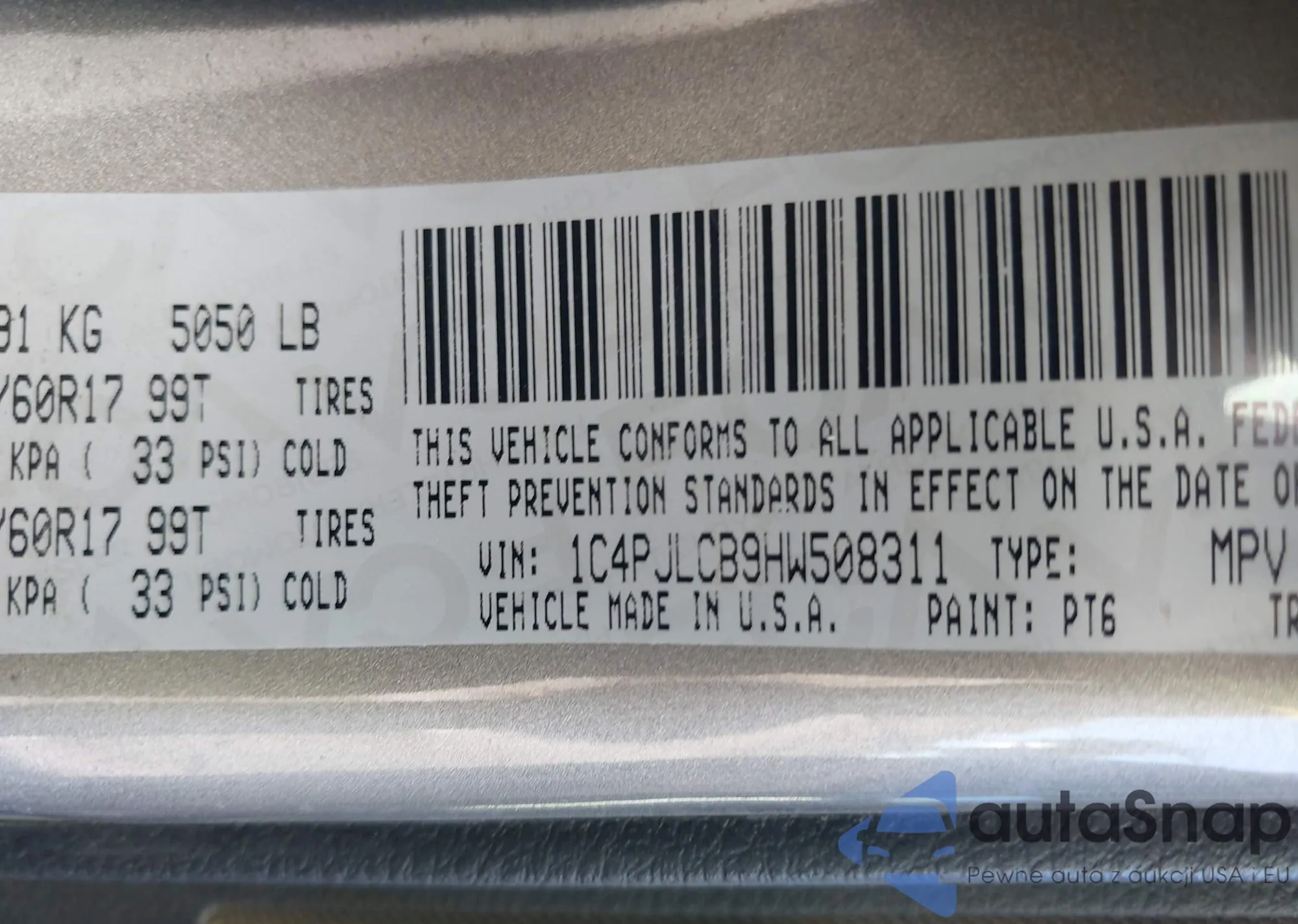 • VIN 1C4PJLCB9HW508311