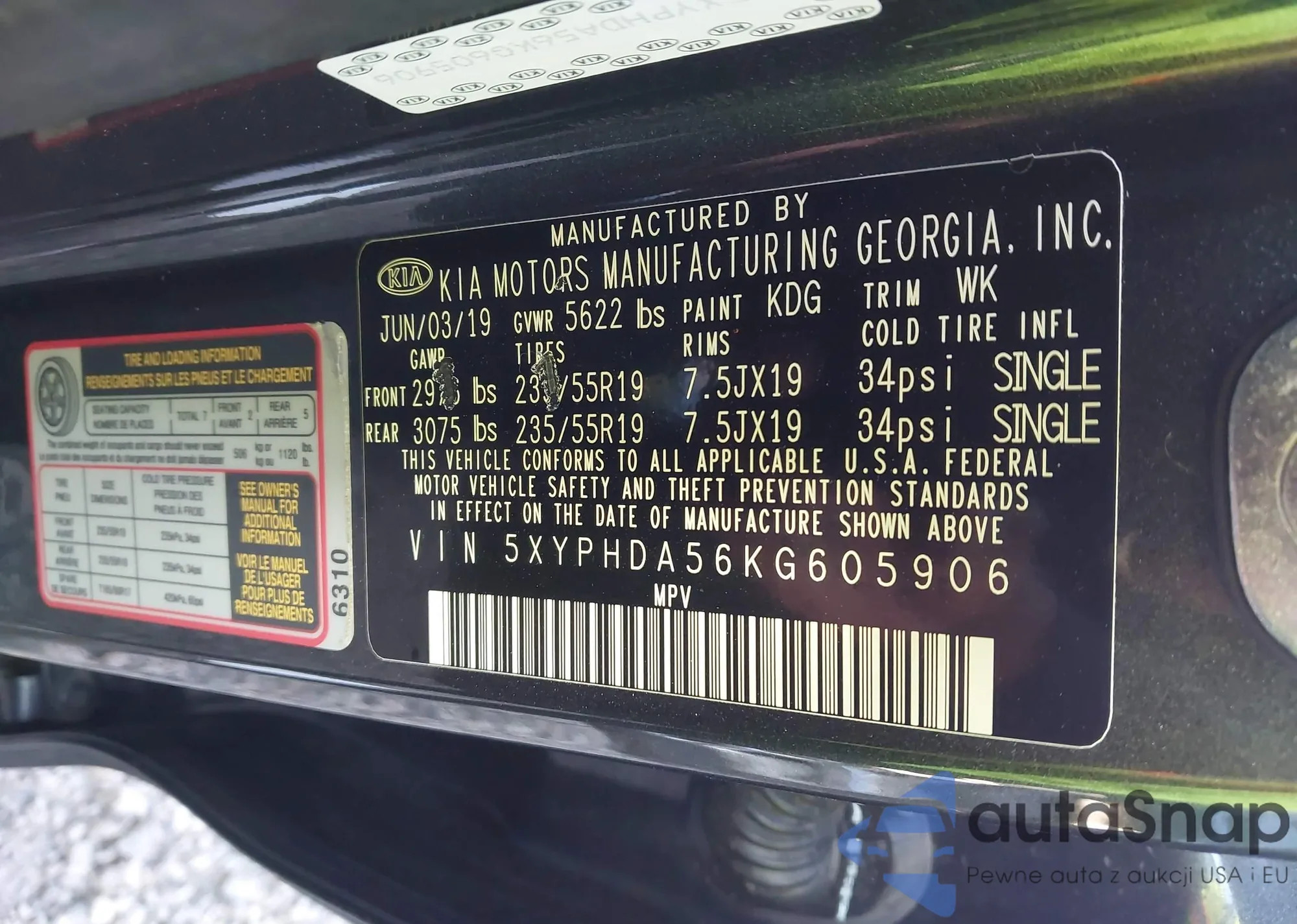 • VIN 5XYPHDA56KG605906