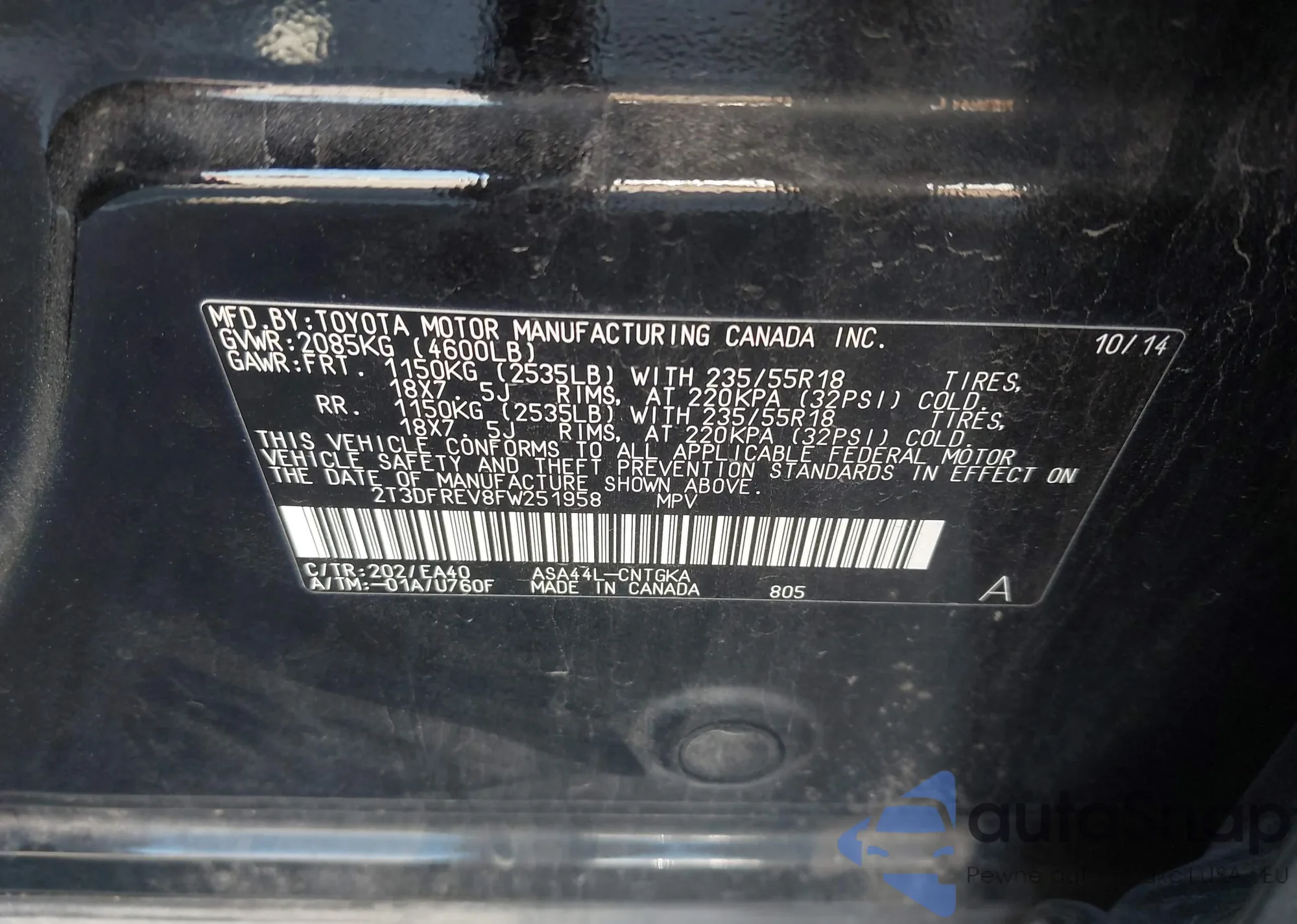 • VIN 2T3DFREV8FW251958