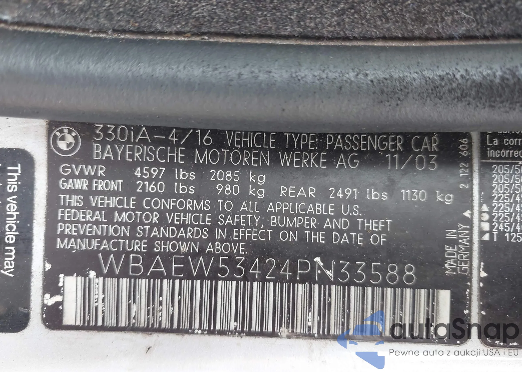 2004 BMW 330Xi from USA, damaged, VIN WBAEW53424PN33588