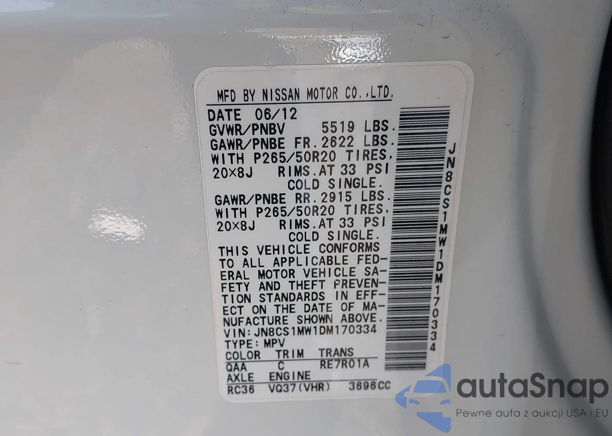 LOT: 43819517 VIN: 5XXGN4A79CG066732