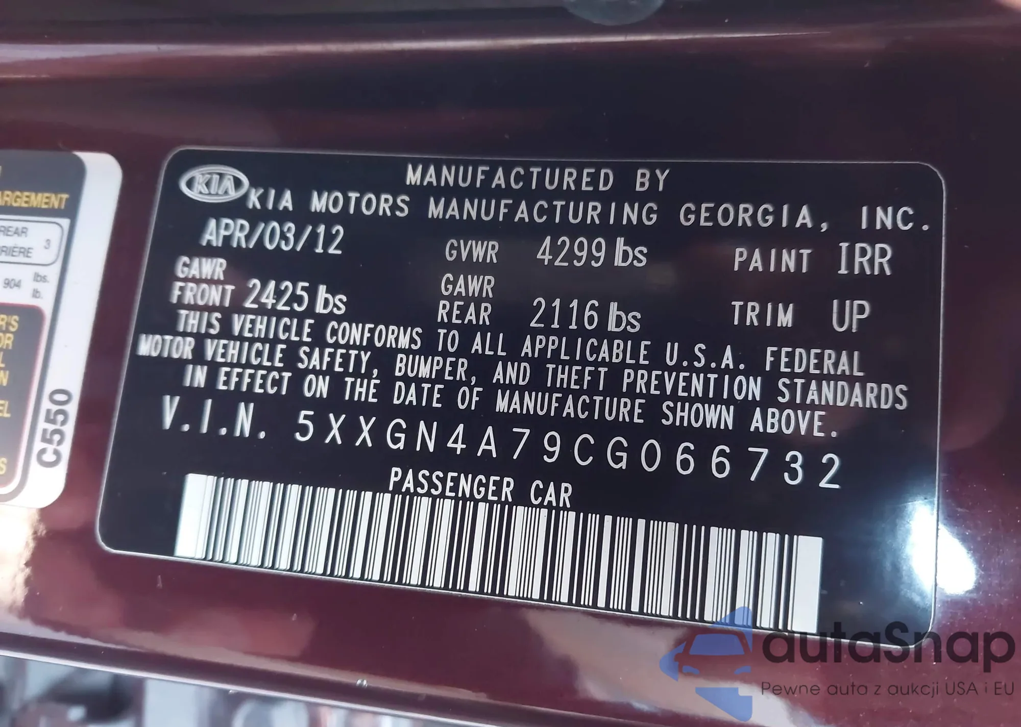 • VIN 5XXGN4A79CG066732