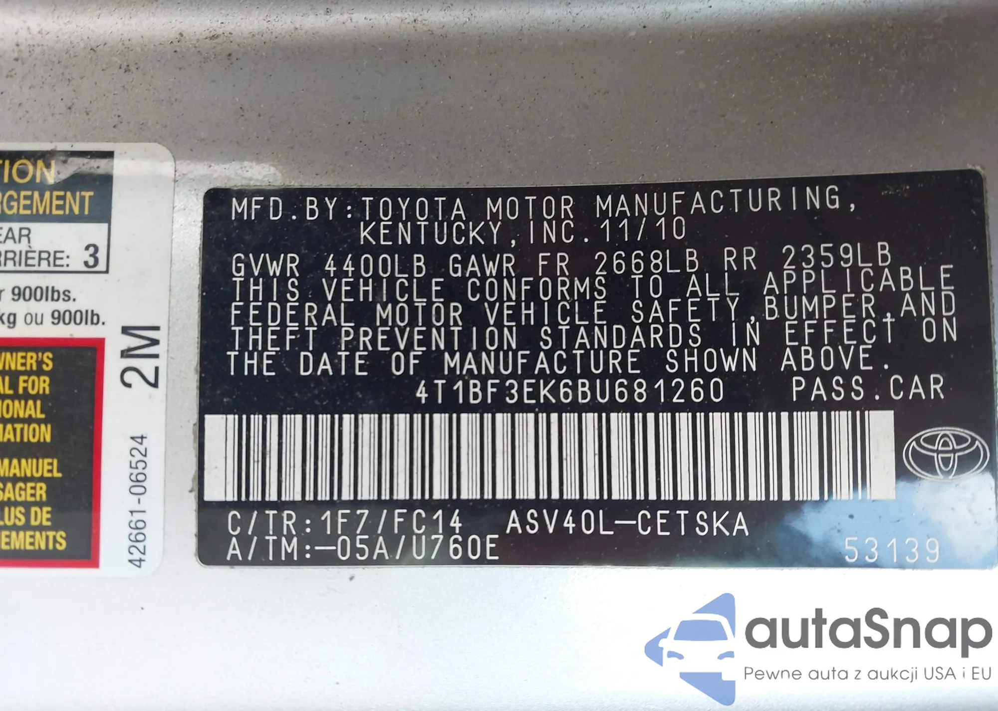 • VIN 4T1BF3EK6BU681260