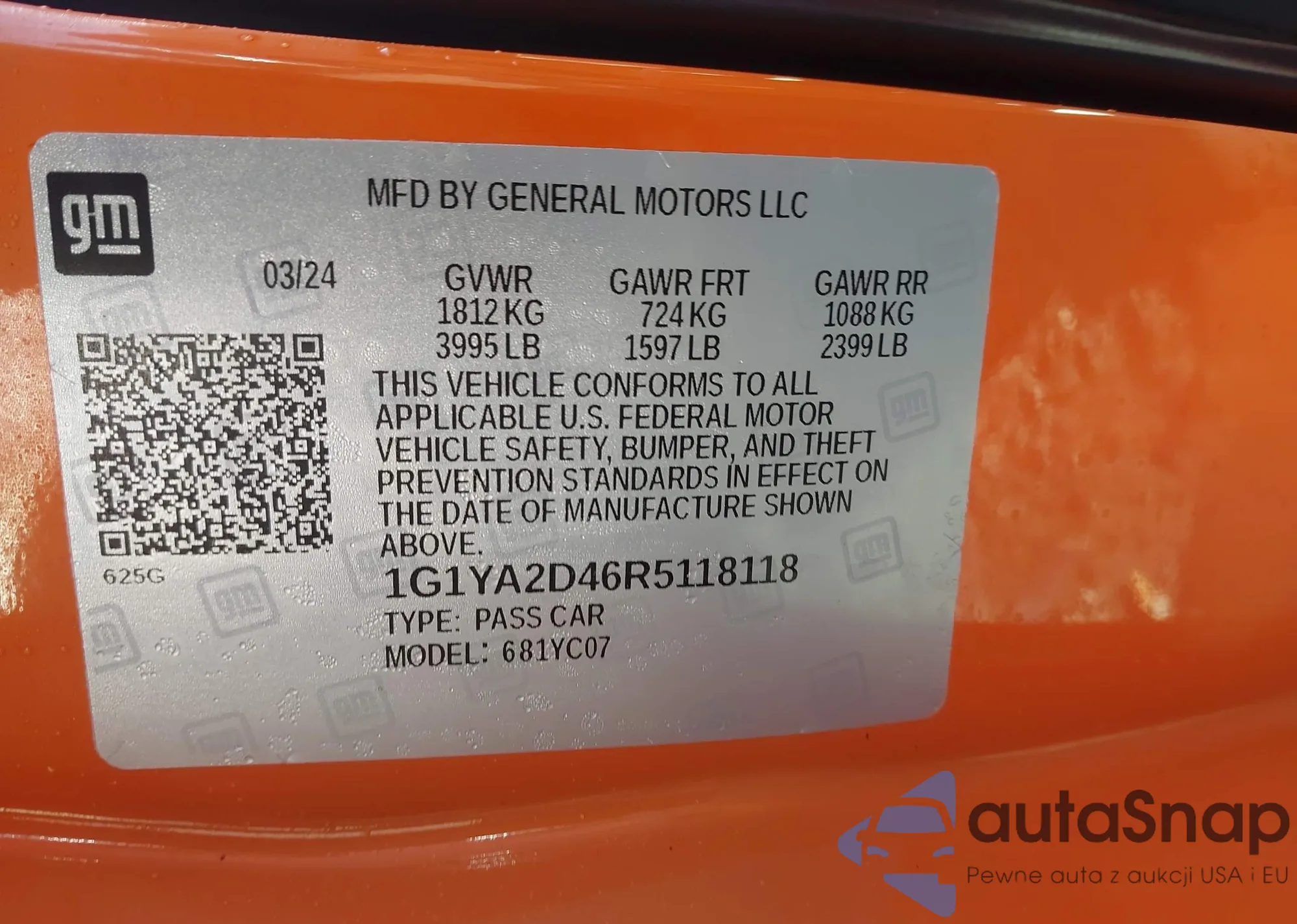 LOT: 41760985 VIN: 1G1YA2D46R5118118