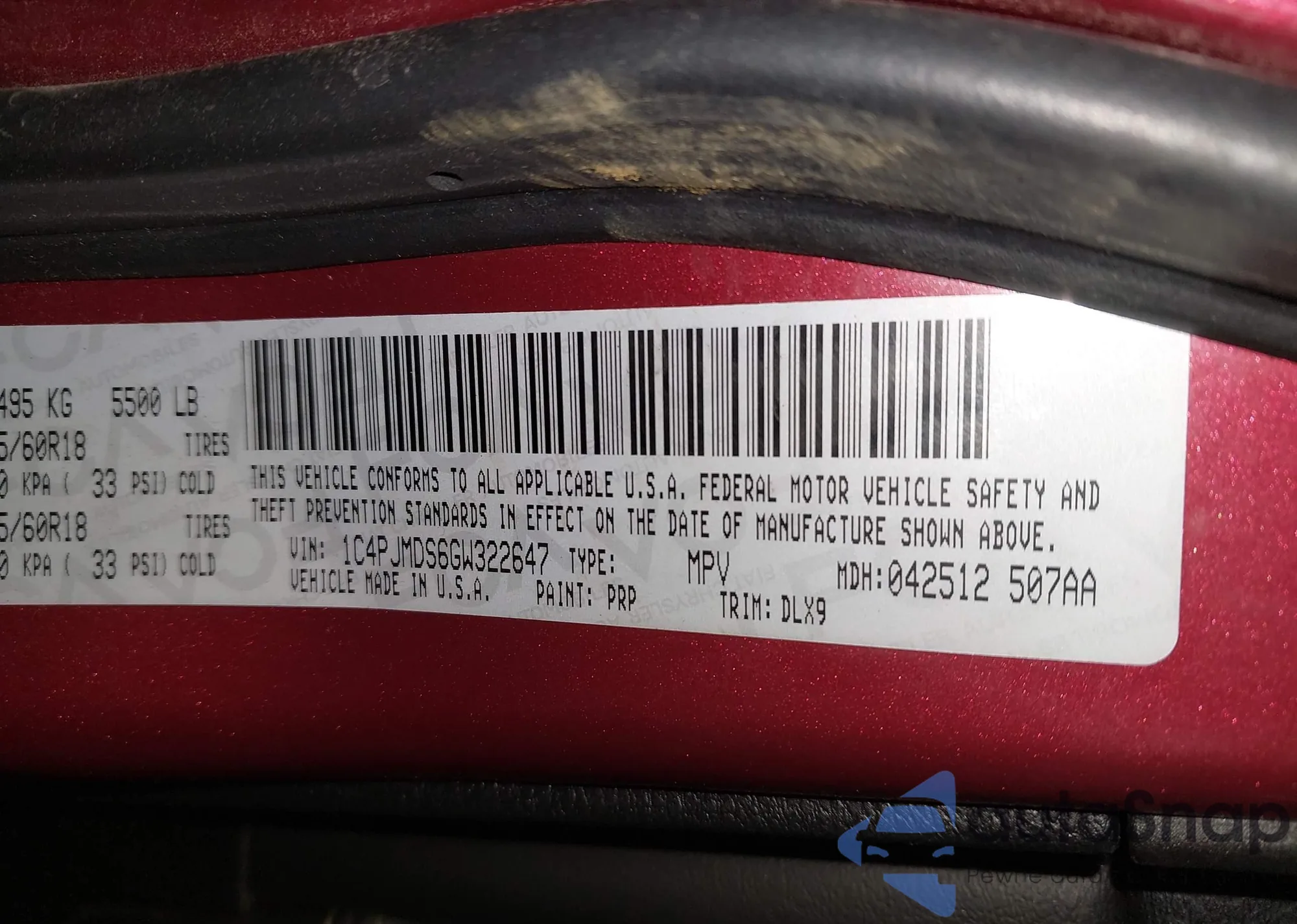 LOT: 43668075 VIN: 1C4PJMDS6GW322647