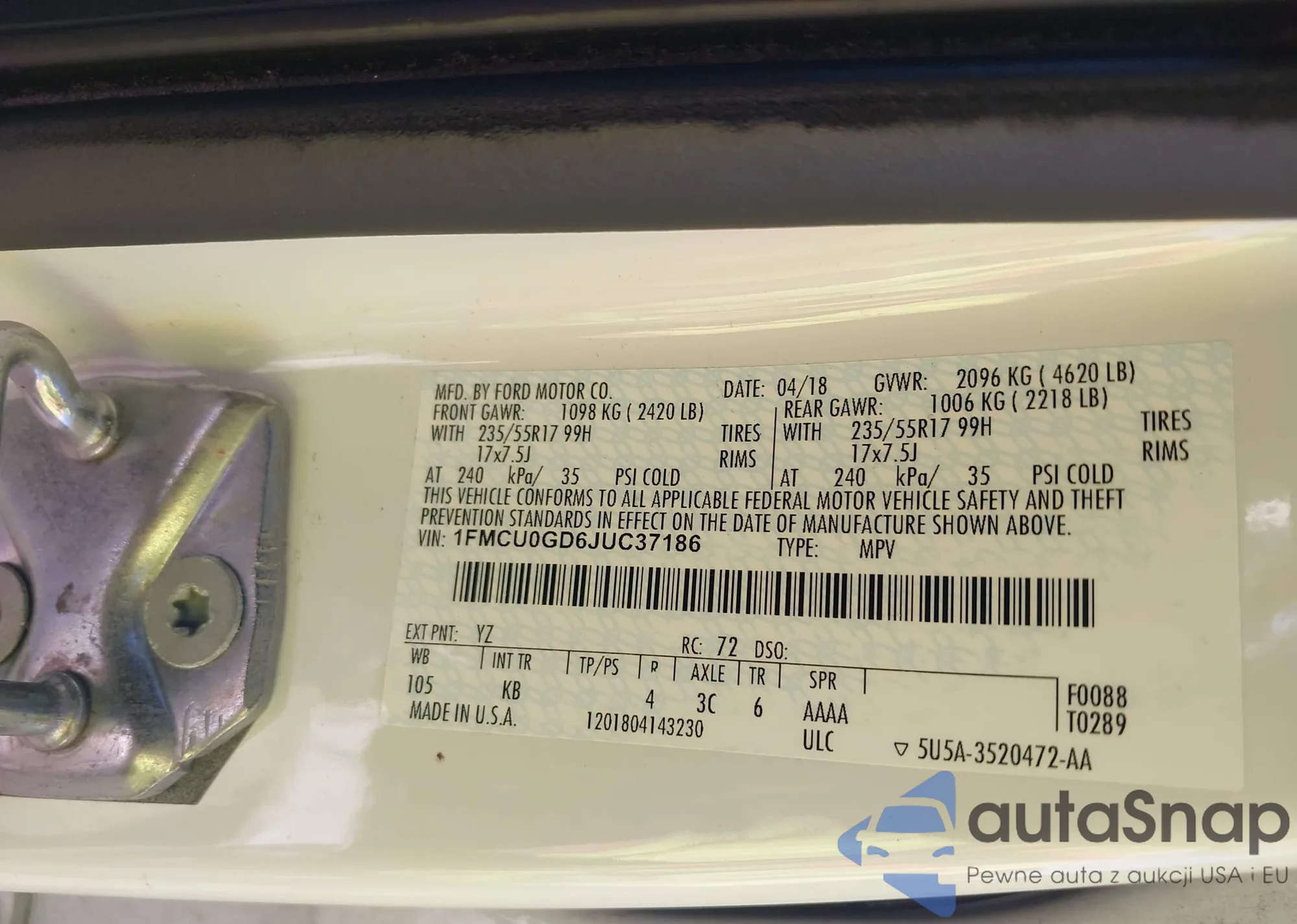 • VIN 1FMCU0GD6JUC37186
