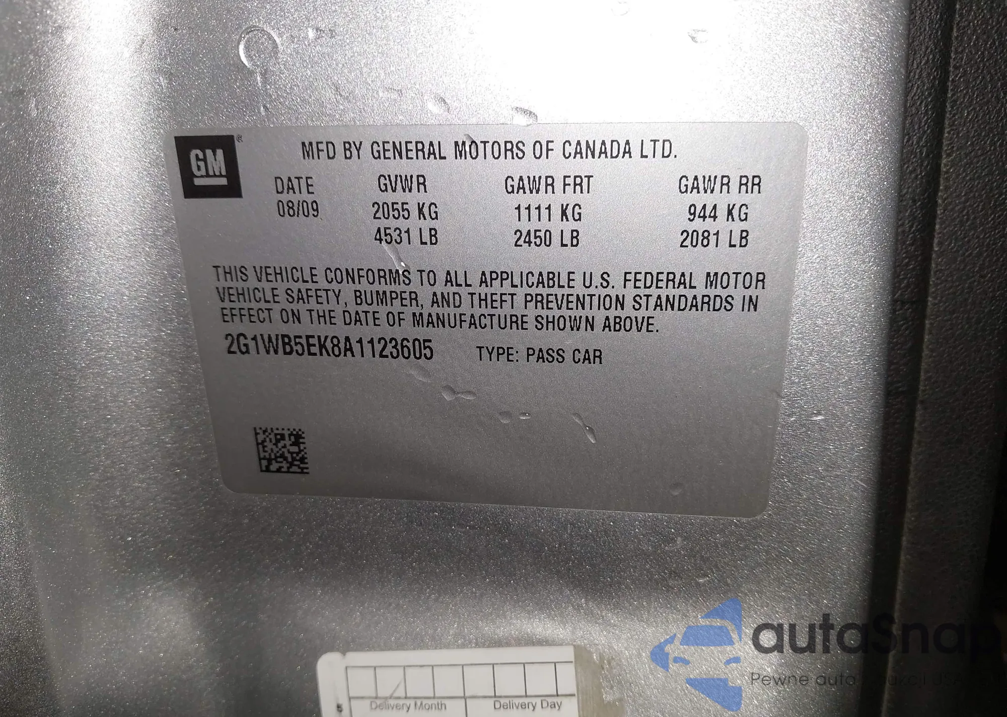 • VIN 2G1WB5EK8A1123605