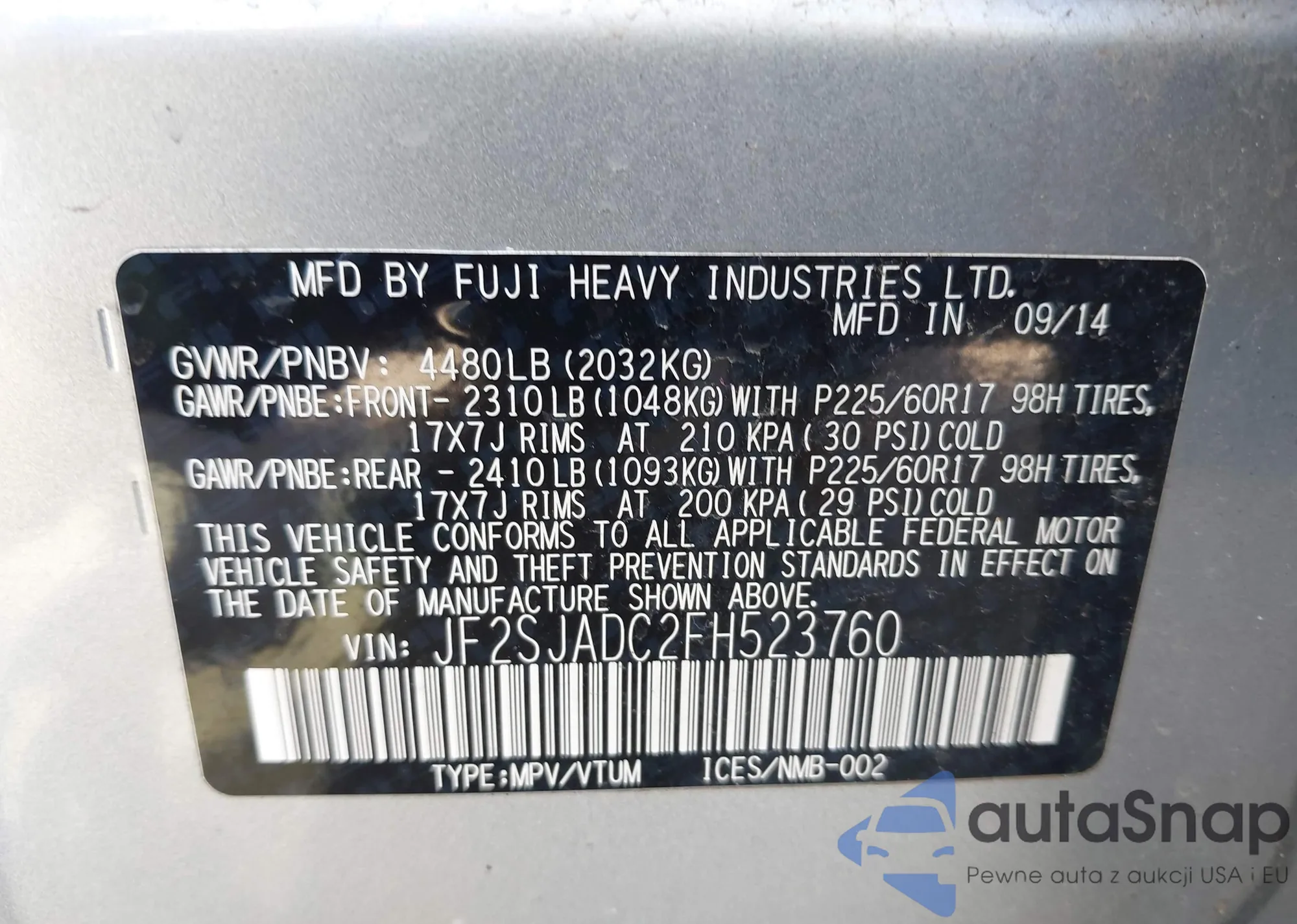 • VIN SHHFK7H53JU222241