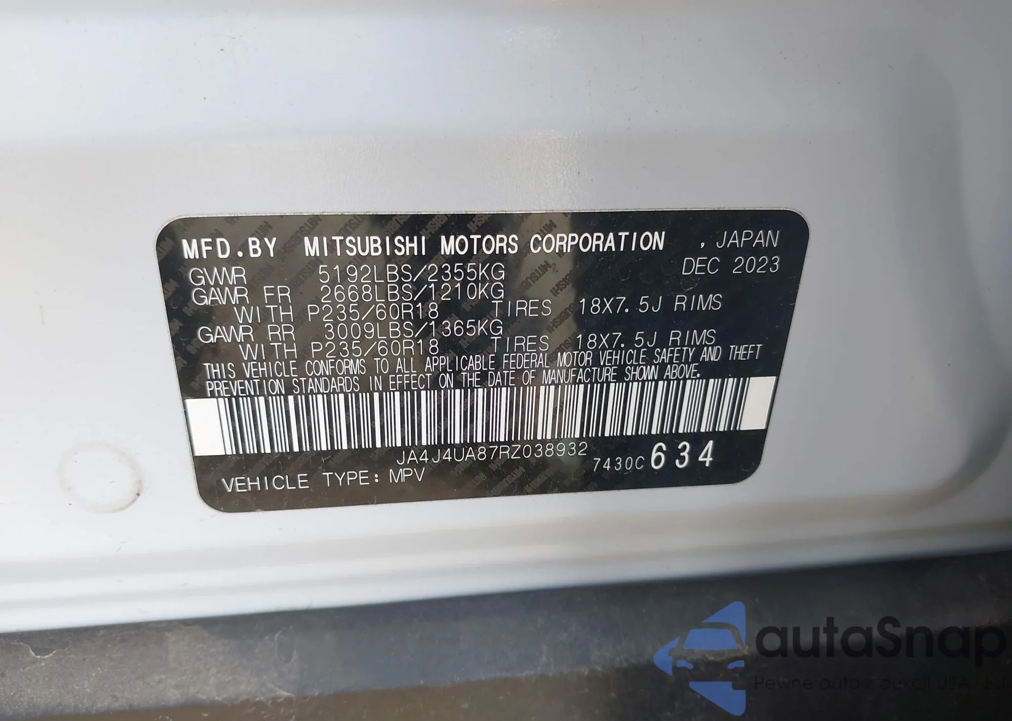 • VIN JA4J4UA87RZ038932