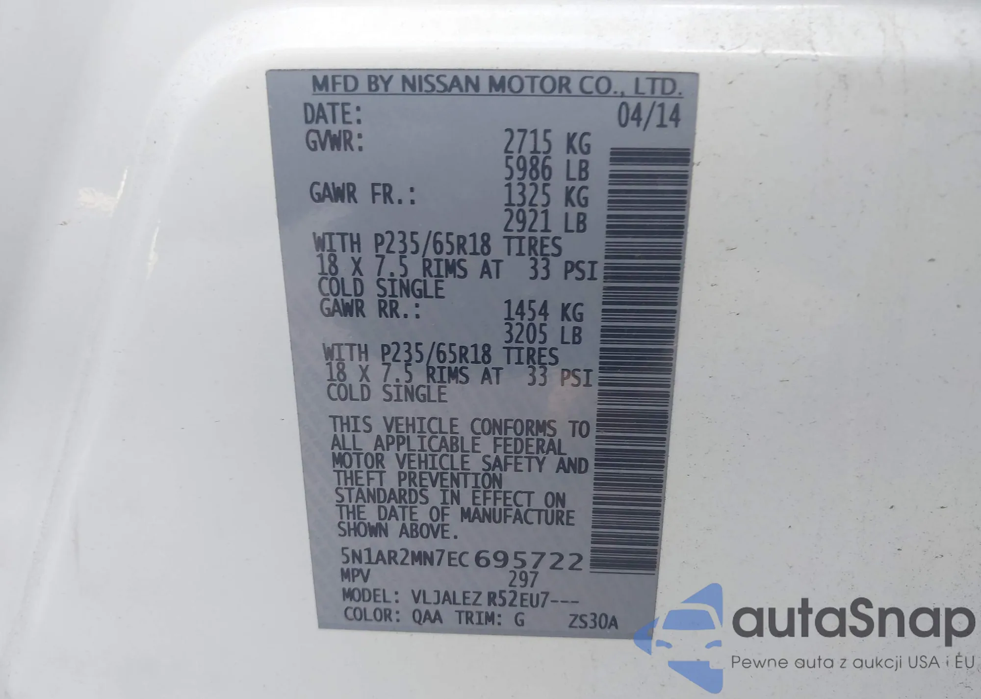 LOT: 43751043 VIN: 3N1AB7APXEY253622