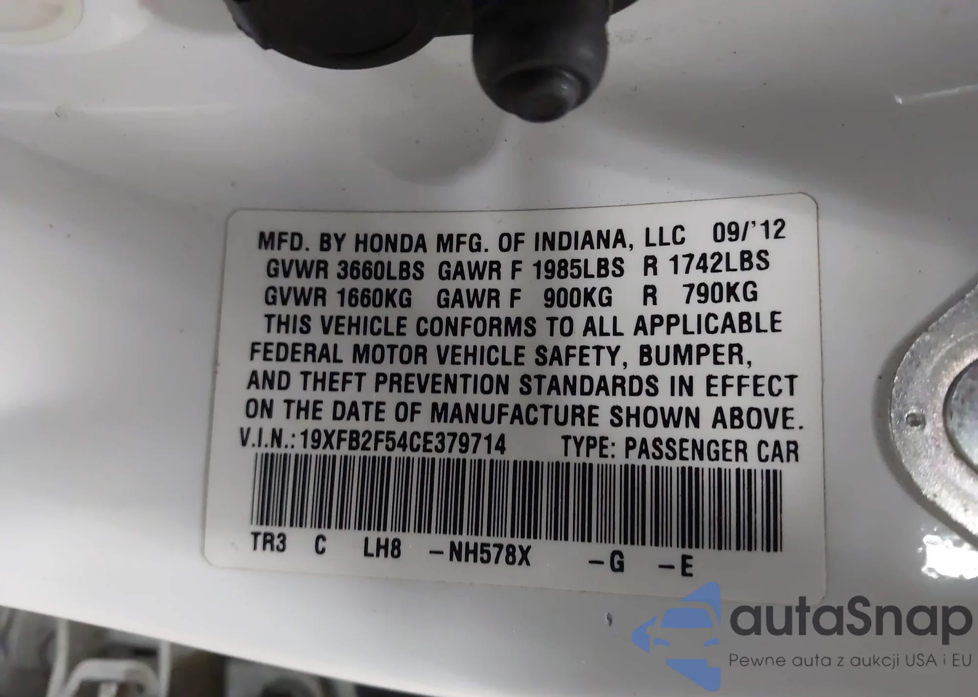 LOT: 43769428 VIN: 19XFB2F54CE379714