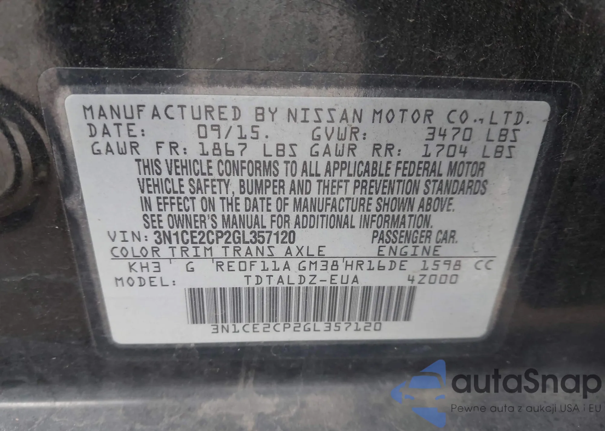 • VIN 3N1CE2CP2GL357120