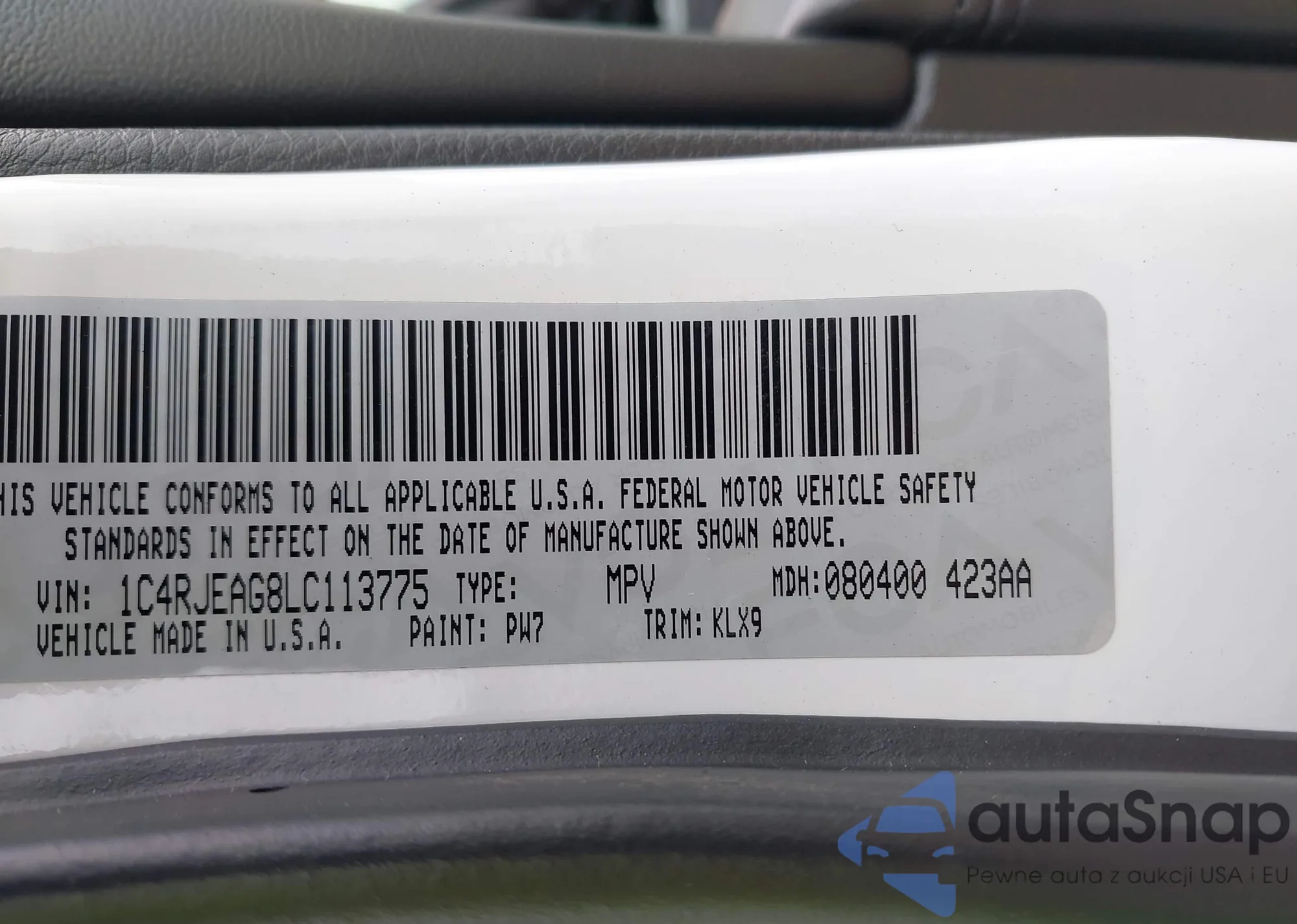 • VIN 1C4RJEAG8LC113775
