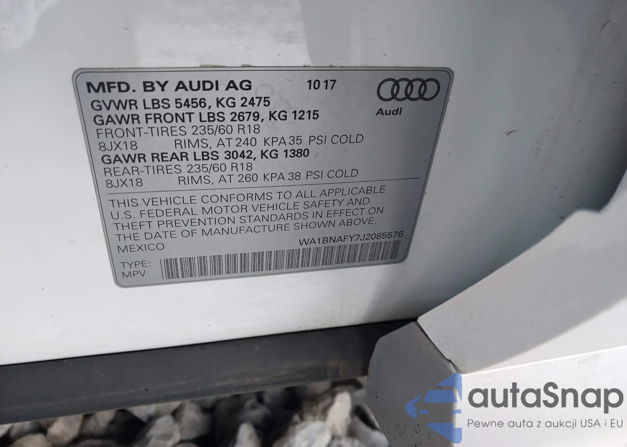 LOT: 43861605 VIN: WA1BNAFY7J2085576