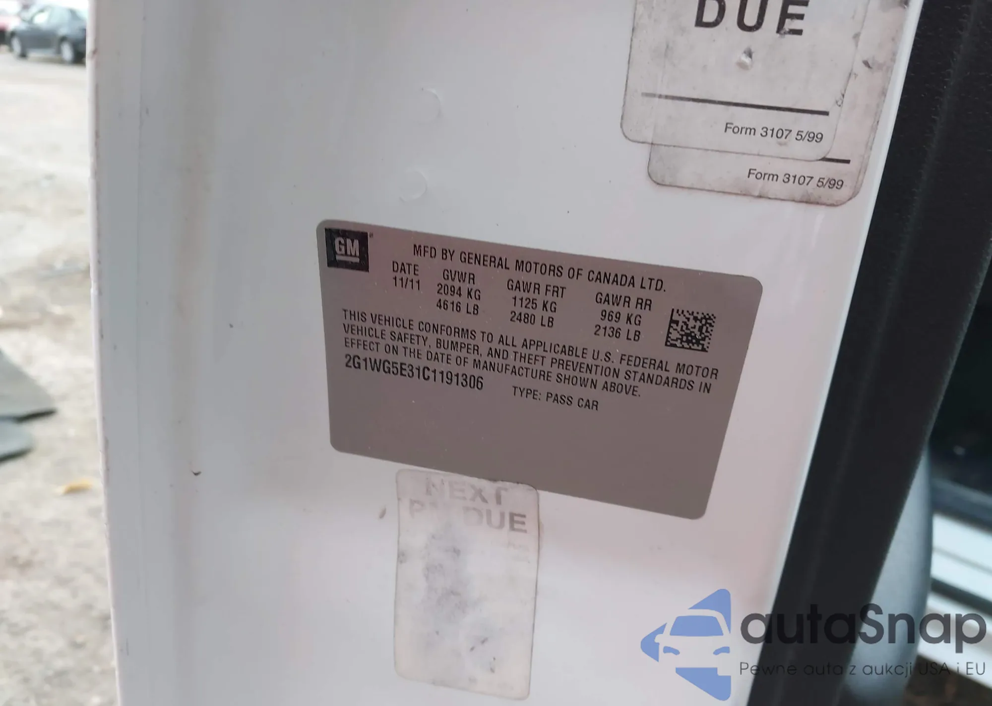 LOT: 43870690 VIN: 2G1WG5E31C1191306