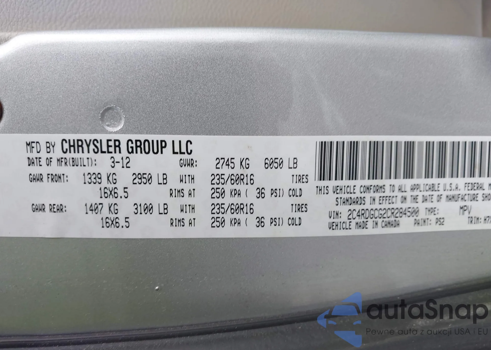 • VIN 2C4RDGBG8FR671445