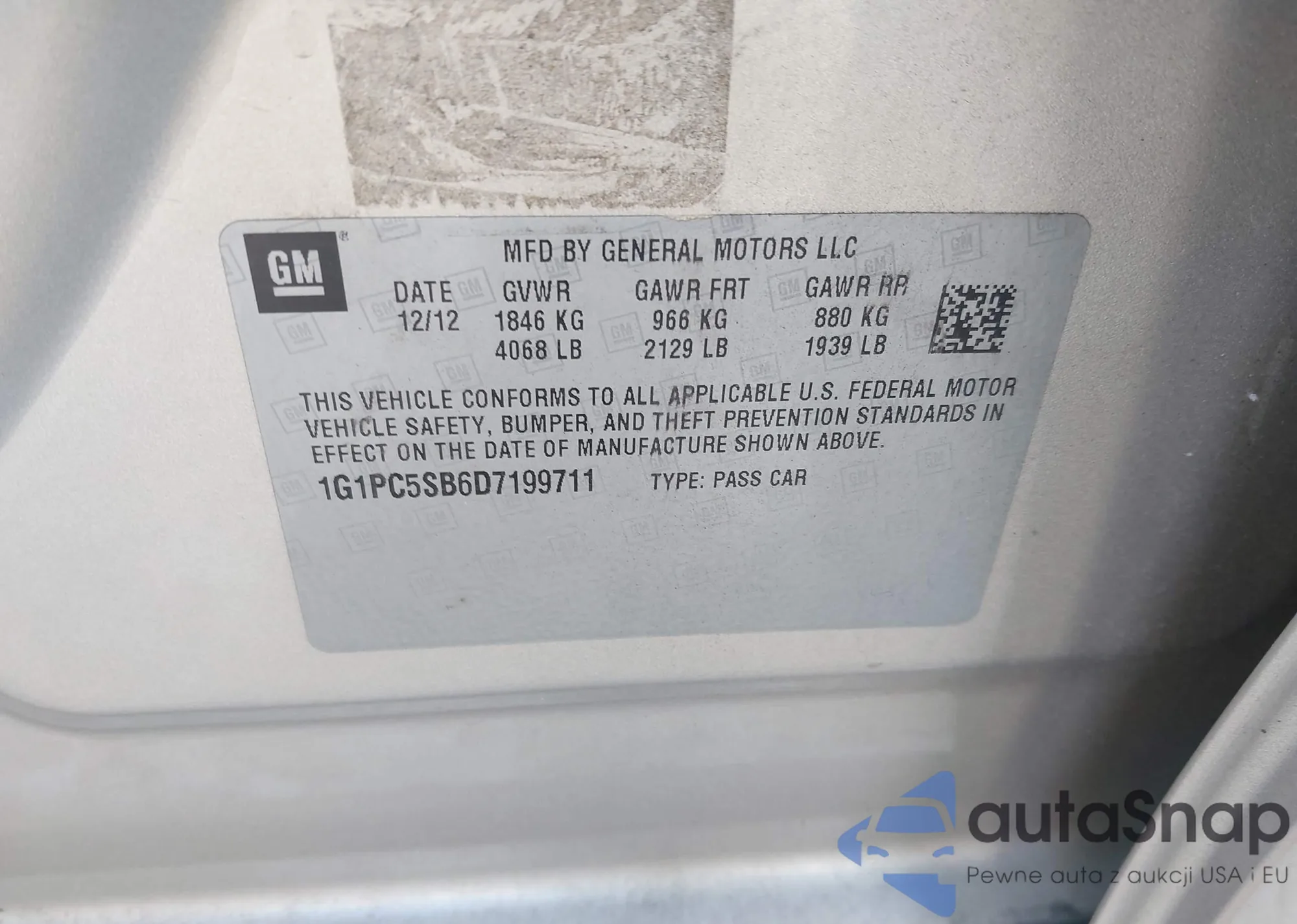 • VIN 1G1ZC5ST7PF124947