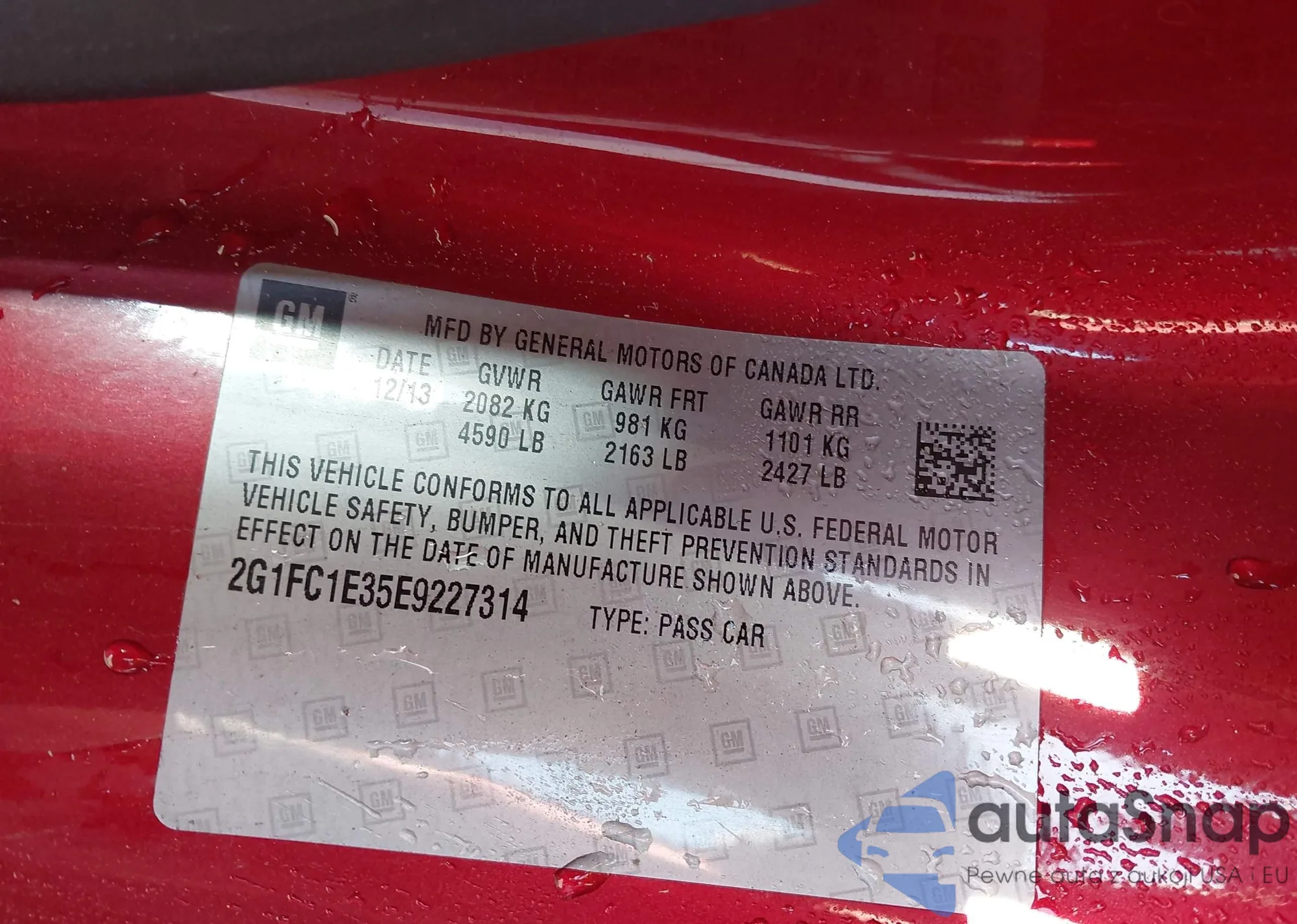 • VIN 2G1FC1E35E9227314