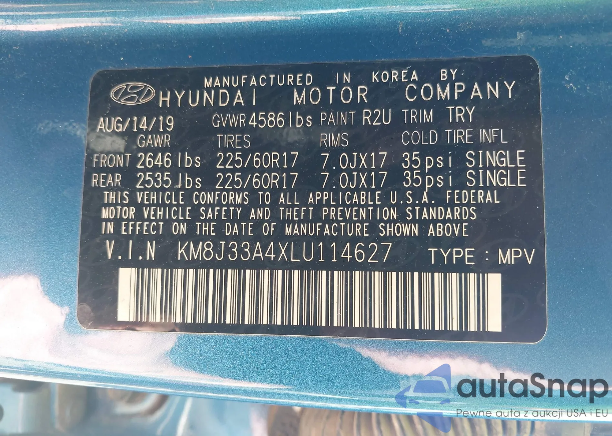 • VIN KM8J33A4XLU114627