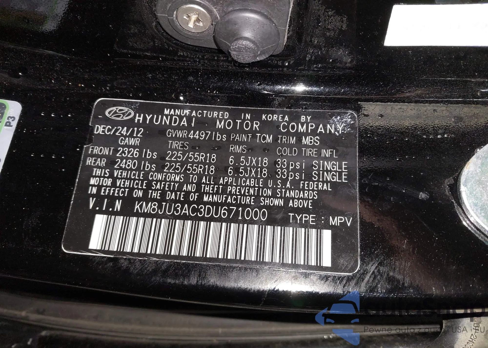 • VIN KM8JU3AC3DU671000