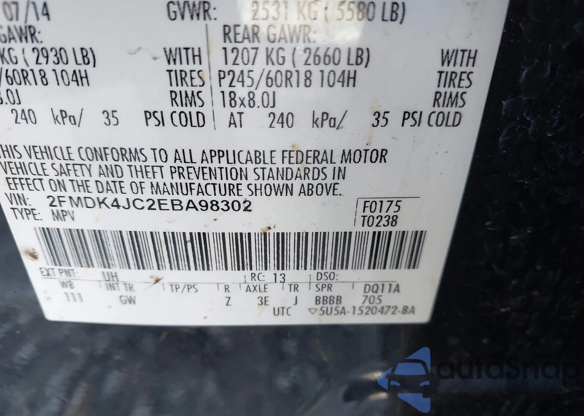 • VIN 2FMGK5CC6BBD00859