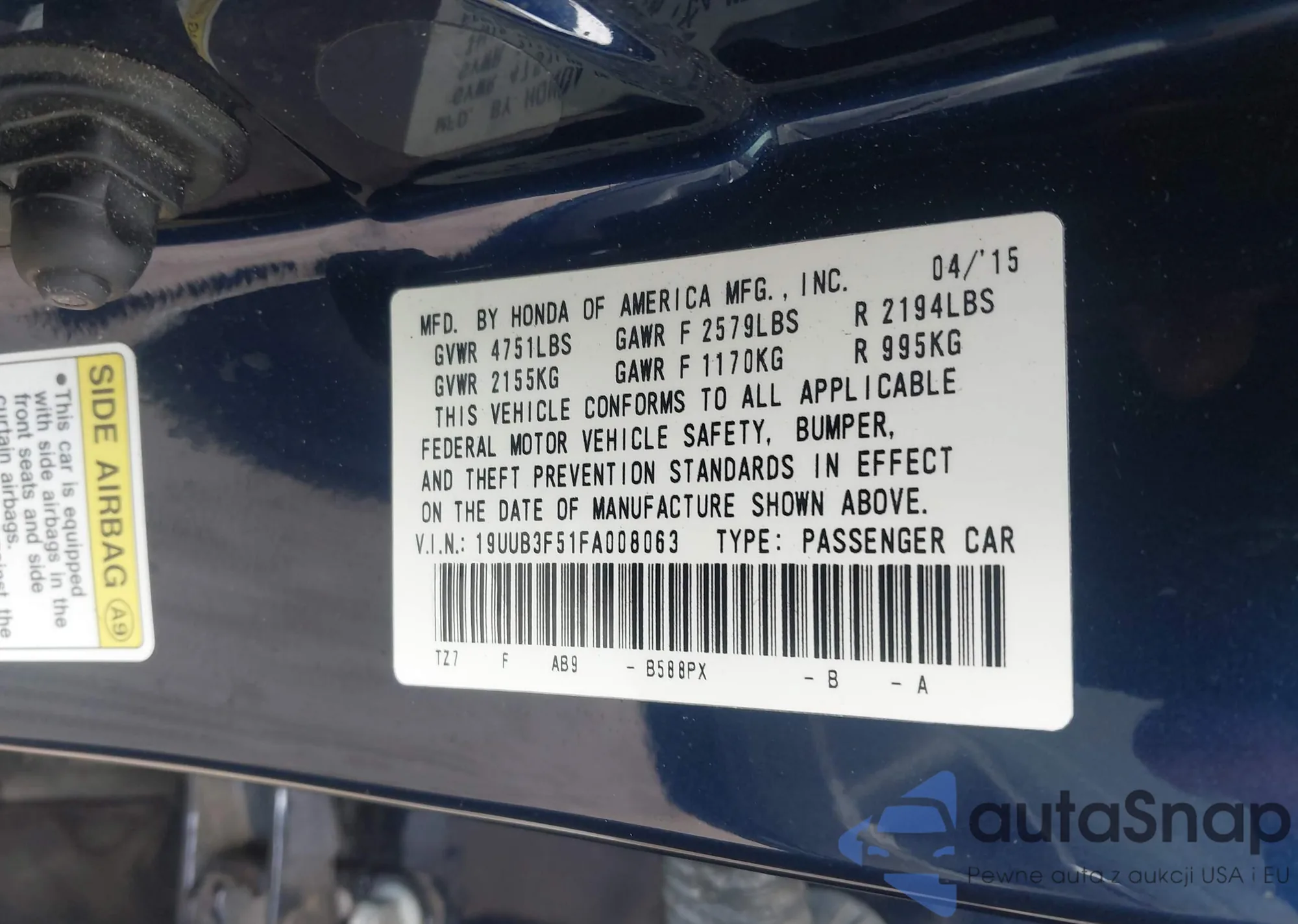 • VIN 1N4AL3AP5FN391821