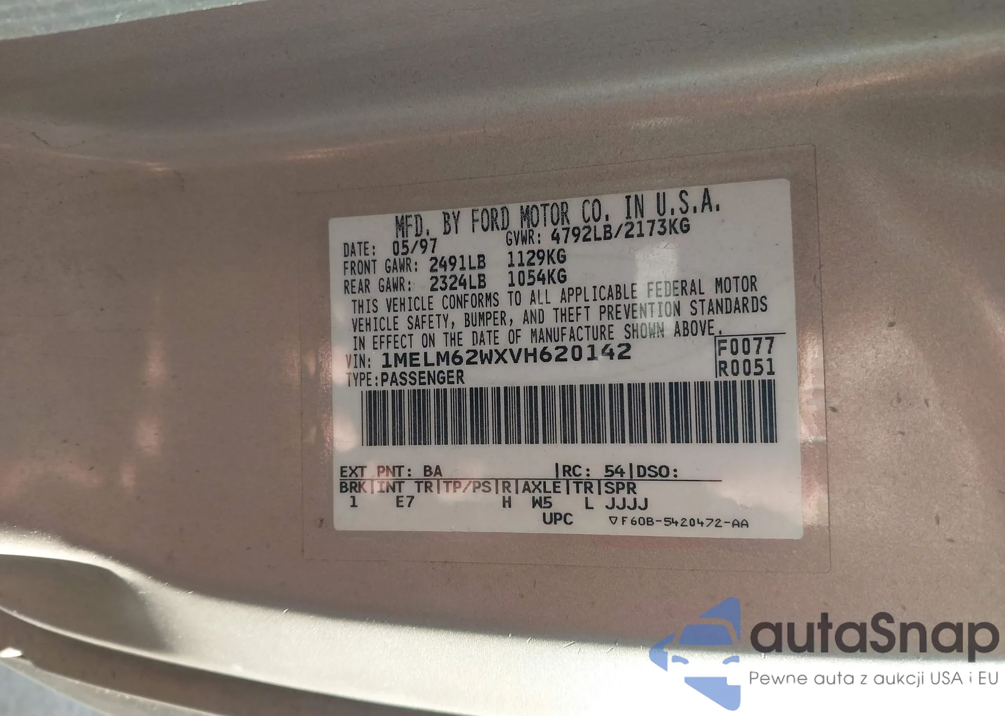 • VIN 1MELM62WXVH620142