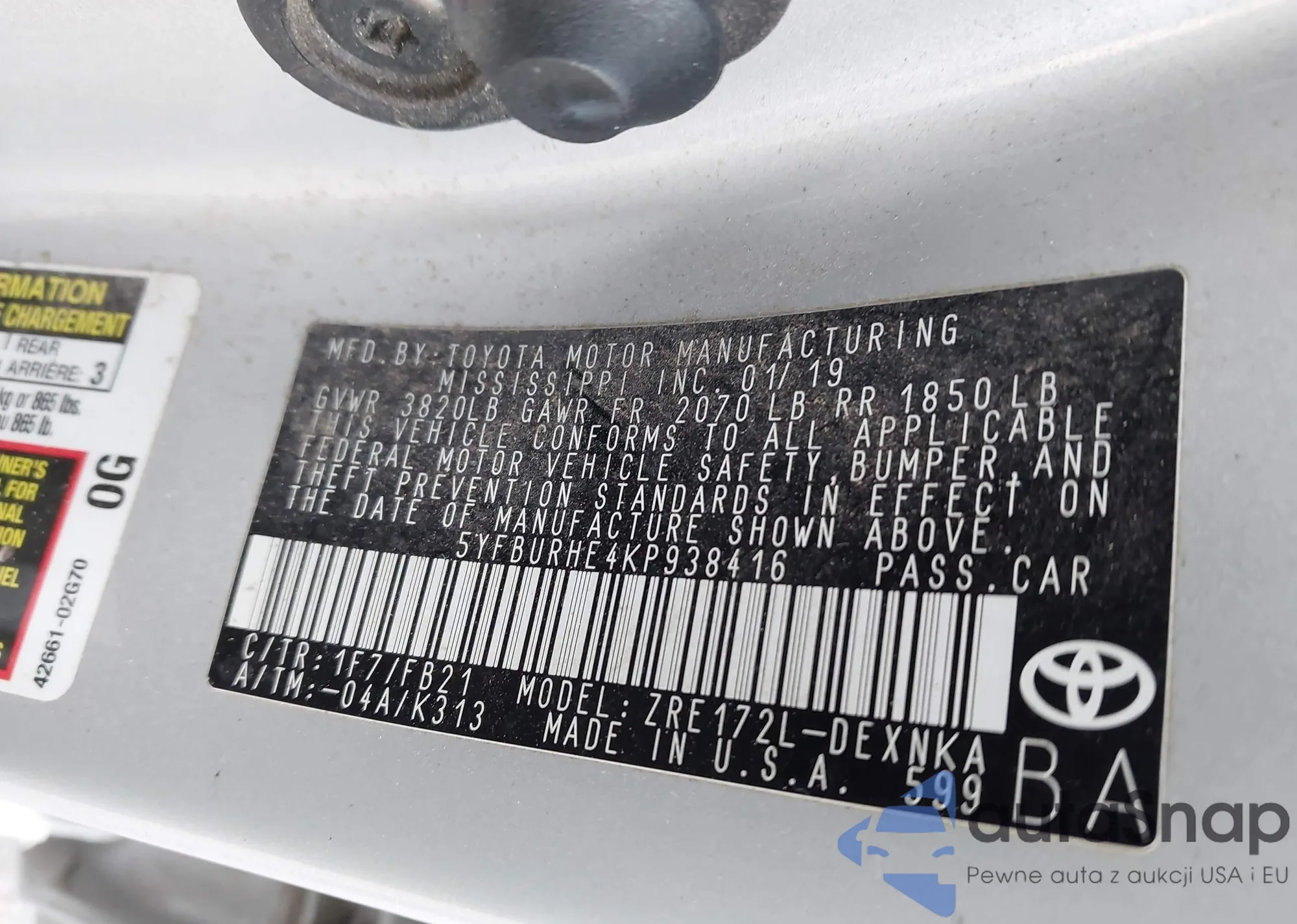 • VIN 5YFBURHE4KP938416