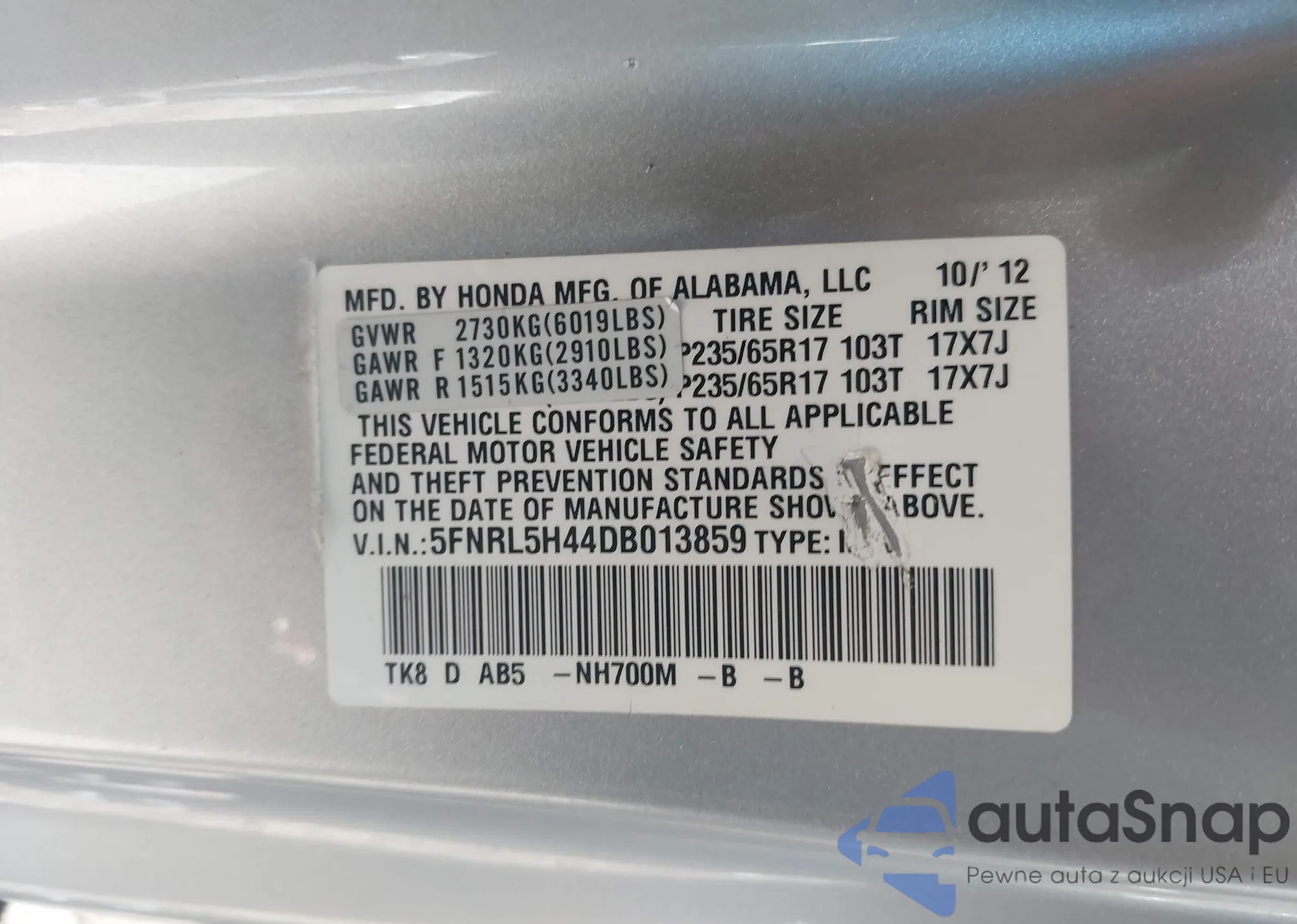 LOT: 43744755 VIN: JN1EV7AR7HM840362