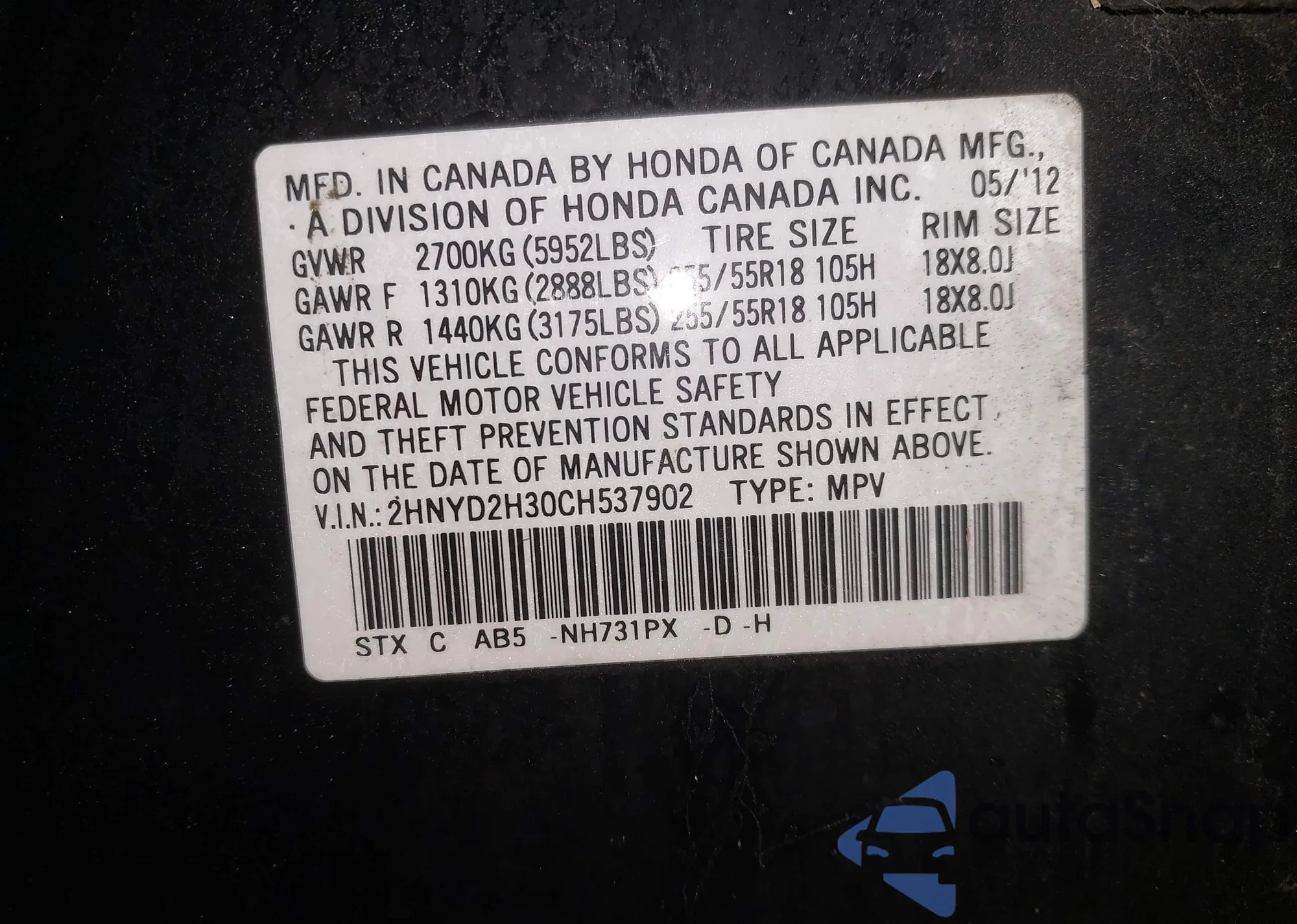 LOT: 43837394 VIN: JN8AS5MT1CW601312