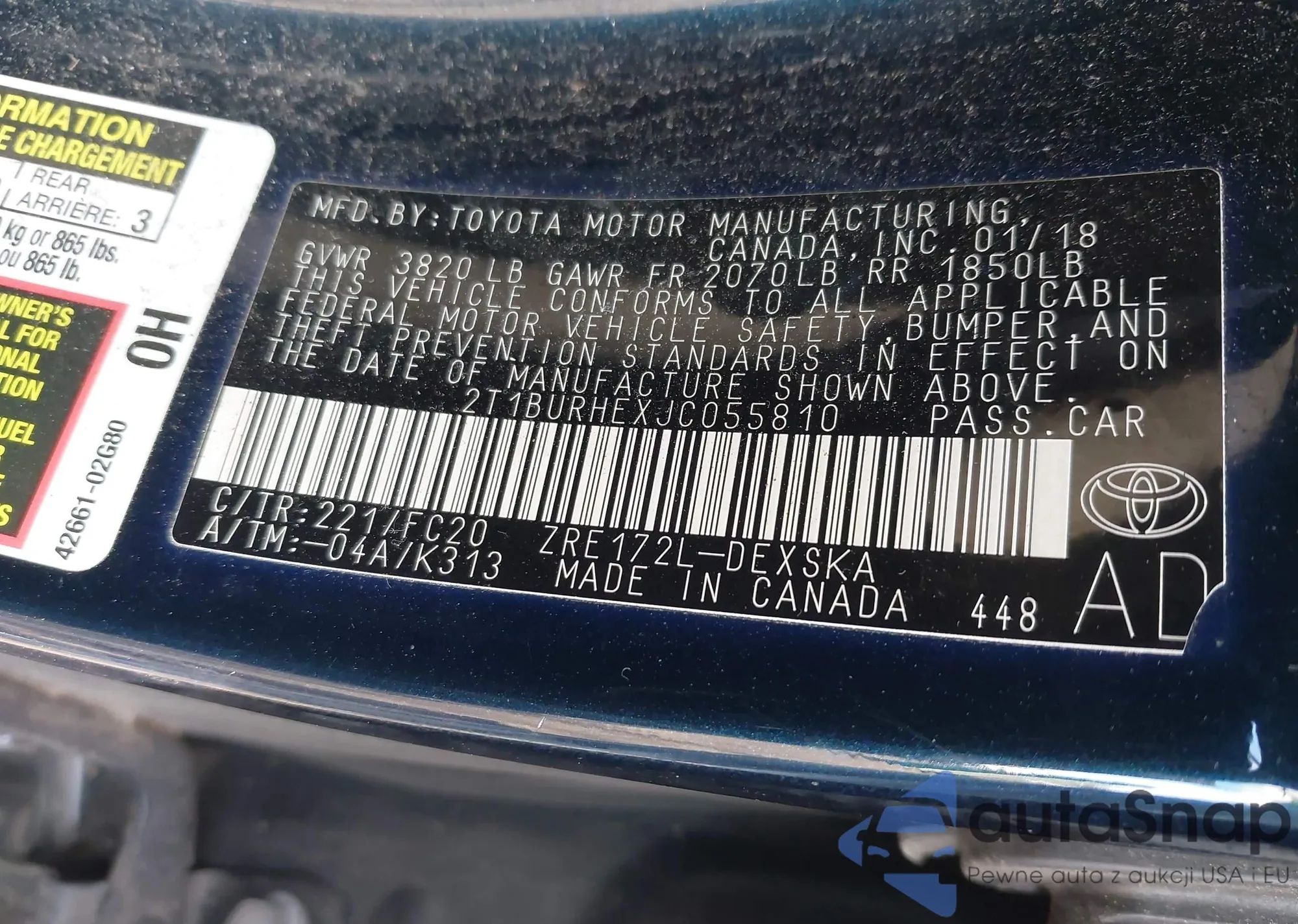 • VIN 2T1BURHEXJC055810
