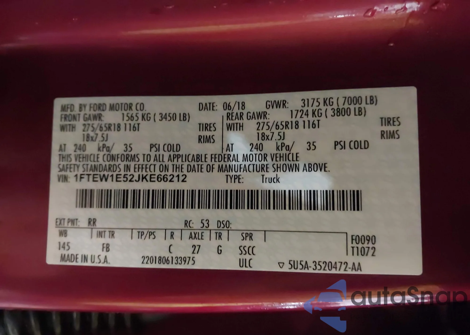 • VIN 3FAHP0HA9BR187730