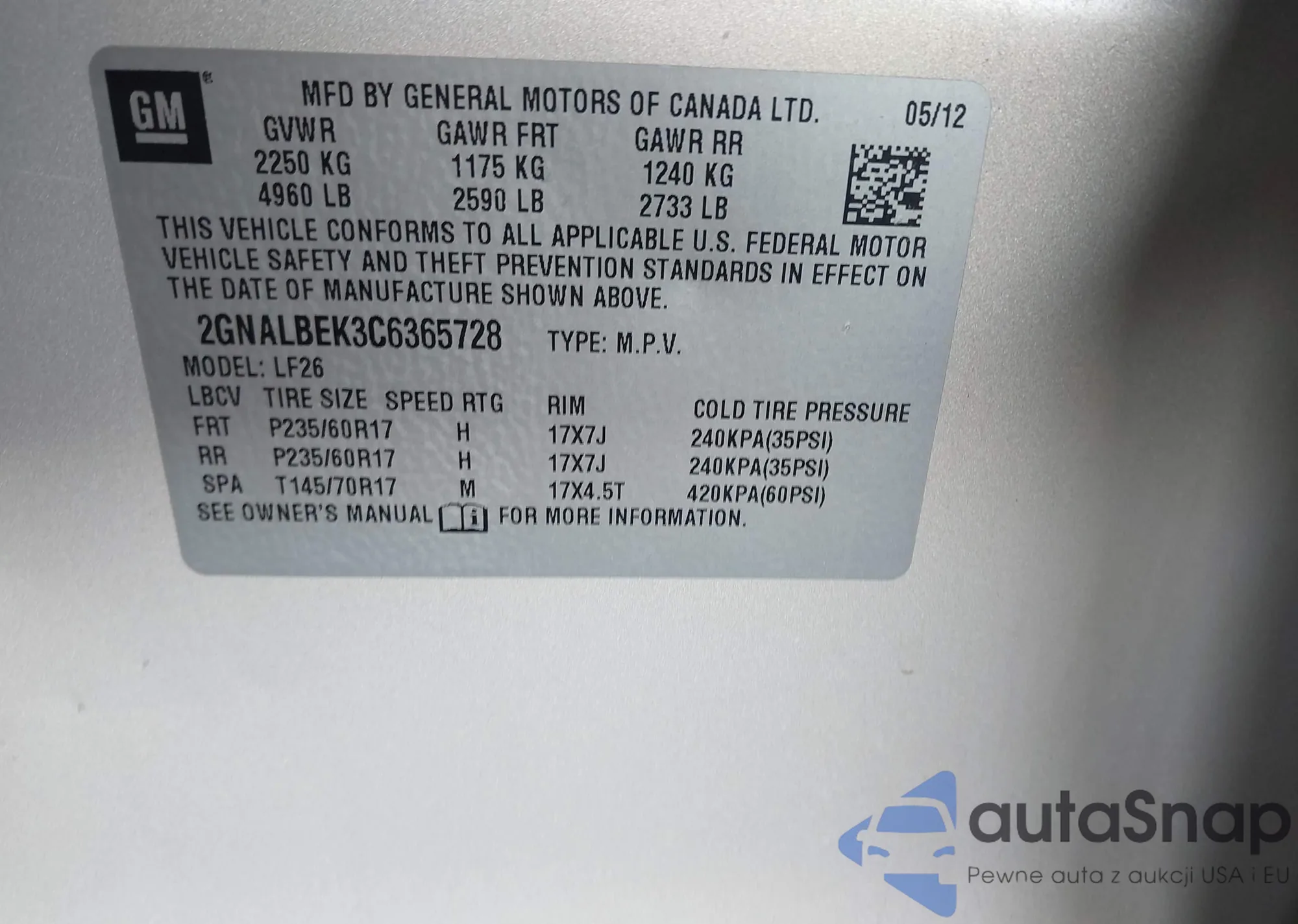 • VIN 2G11X5SL2E9289148