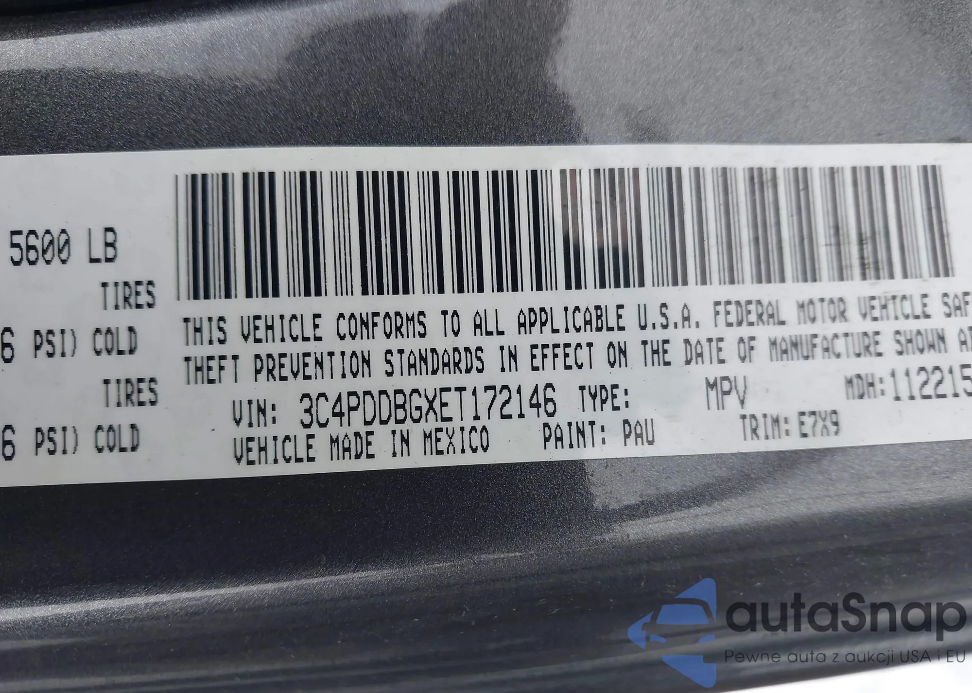 LOT: 43883221 VIN: 3C4PDDBGXET172146